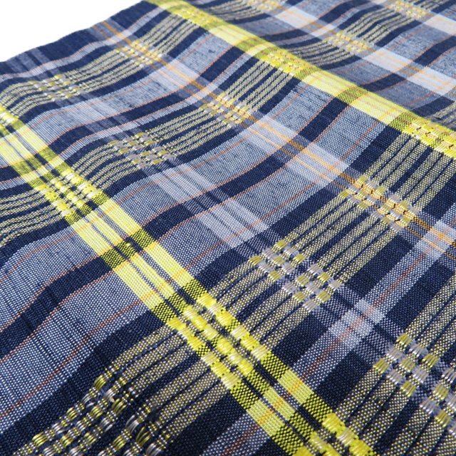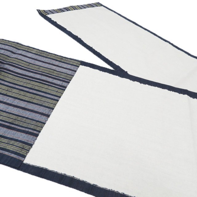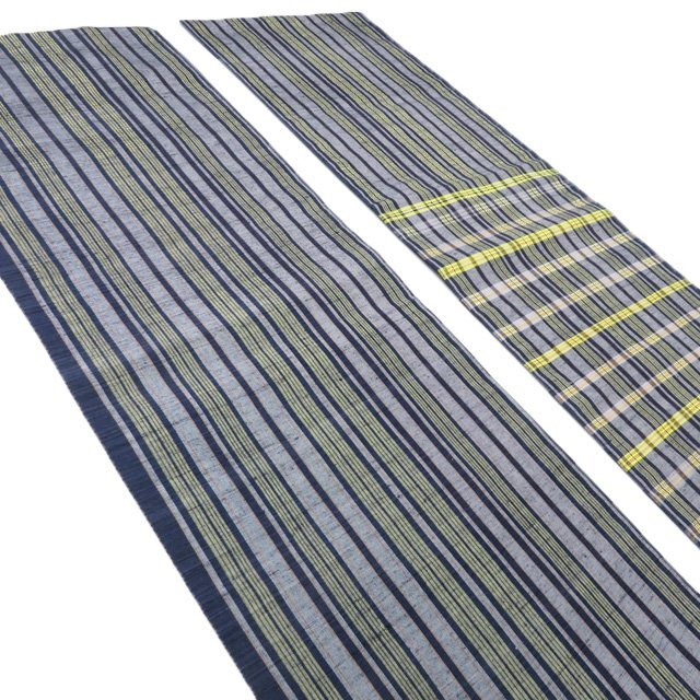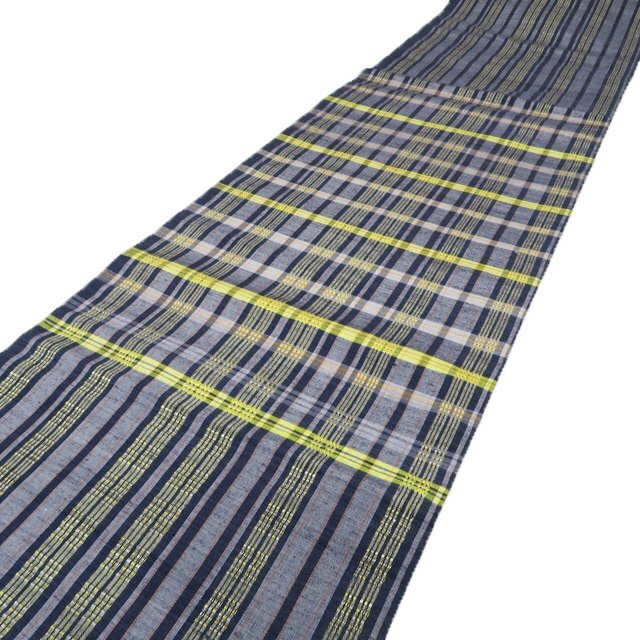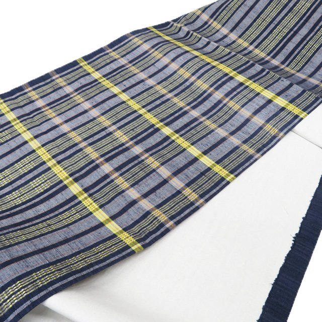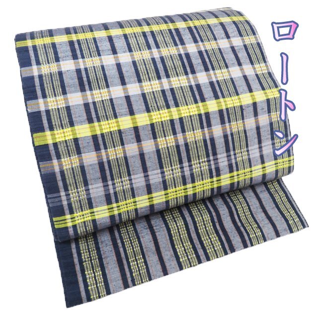 サイズ 371.5cm x 31cm 素材 正絹 商品ランク A ●お色 紺色 黄系色 沖縄県の伝統織物の一つで、中国より伝わった織物の技法で作られた織物 【琉球ロートン織】。 花織、花倉織と並び、首里織の代表的な織物として琉球王国時代から今日まで、その伝統と技が受け継がれてきました。 琉球王朝の時代からつづく歴史ある織物、是非お手元にお迎えくださいませ。 未使用の美しいお品物です。 証紙等、付いていないお品物です。 写真に写っている帯のみの販売で、小物等の付属品はついておりません 一部商品は実店舗・他サイトでも並行して販売しておりますので売り切れの際はご了承ください。 その他多数販売中 oku | ||||||