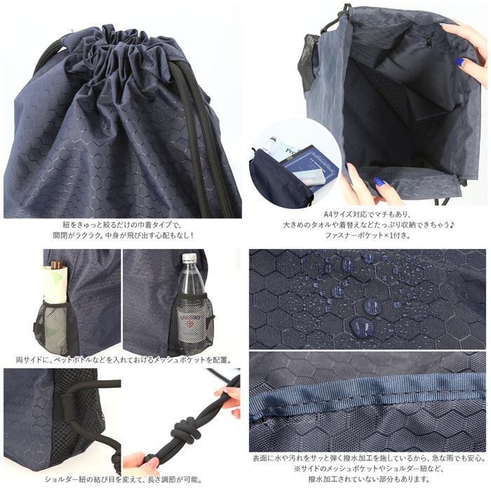 | 商品説明 | ・・アウトドアやレジャー、スポーツシーンなどで活躍する、ナップサック♪ ・ナップサック自体の不可を感じにくい軽量設計!持ち運びにも便利。 ・表面に水や汚れをサッと弾く撥水加工を施しているから、急な雨でも安心。(※サイドのメッシュポケットやショルダー紐など、撥水加工されていない部分もあります。) ・紐をきゅっと絞るだけの巾着タイプで、開閉がラクラク。中身が飛び出す心配もなし! ・A4サイズ対応でマチもあり、大きめのタオルや着替えなどたっぷり収納できちゃう♪ファスナーポケット×1付き。 ・両サイドに、ペットボトルや折りたたみ傘を入れておけるメッシュポケットを配置。 ・ショルダー紐の結び目を変えて、長さ調節が可能。 ・お好みや用途に合わせて選べる2サイズ展開。サイズ違いで、親子お揃いにしてもOK。 ・お子さまの通学用サブバッグやプールバッグとしてもおすすめ。 |