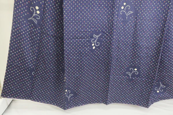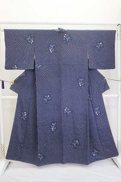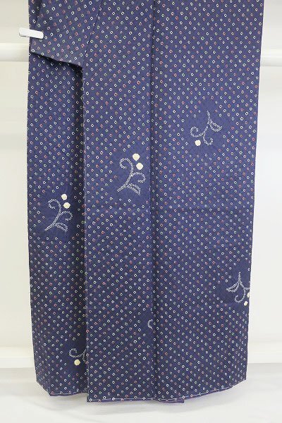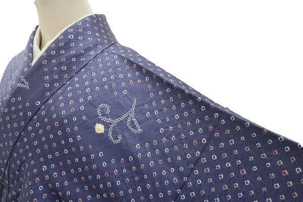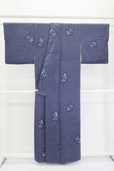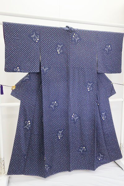 未使用品 小紋 総絞り くすんだ青紫 植物文 身丈159.0cm 裄丈68cm 仕立て上がり 正絹 お洒落 カジュアル 着物フィ m-8076 |