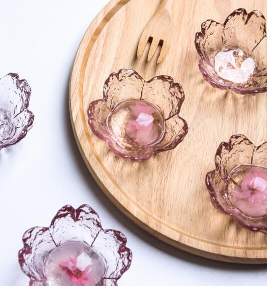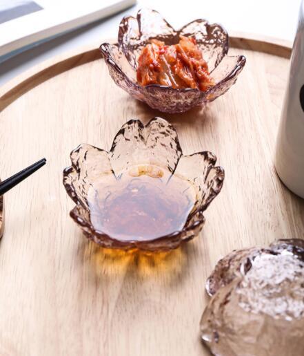 新入荷醤油皿 ガラス 薬味皿 小皿 可愛い 桜形 ソース皿 和食器 食品ディップボウル 調味料皿 受け皿 前菜プレート 風味皿 漬物入れ 6点