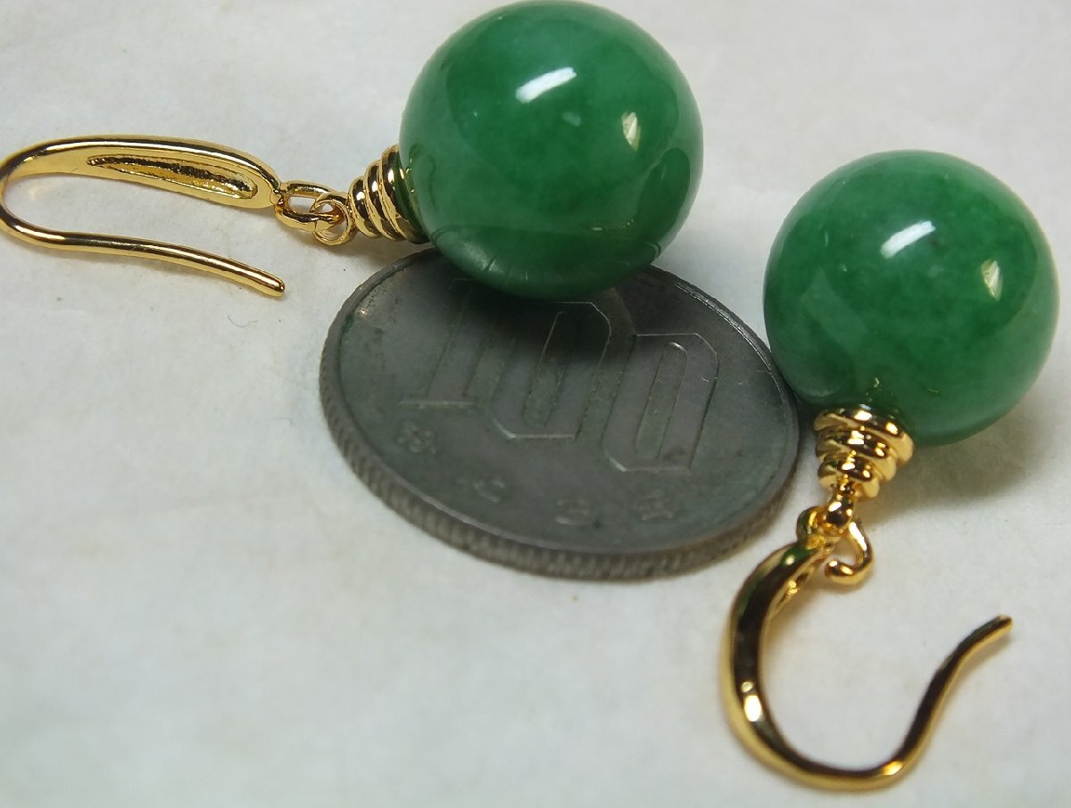 ▲▽■龍香堂■ミャンマー翡翠14mm玉ピアス即決yor*△▼ | |