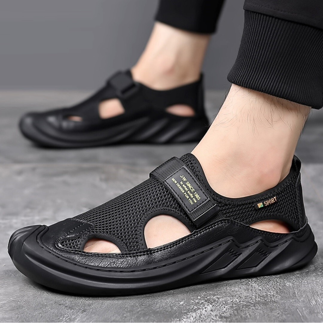 sa67 黒 【26.5cm】メンズ スポーツサンダル 通気 水陸両用 メッシュ つま先保護 かかとあり 夏用 歩きやすい ビーチ アウトドアサンダル