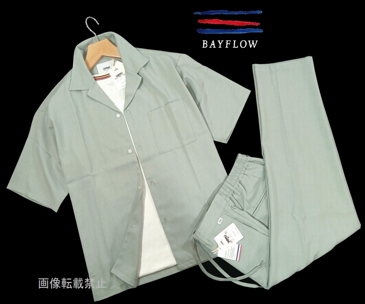 新品 BAYFLOW ベイフロー ドライタッチ 半袖 オープン シャツ セットアップ 3/M ライトグリーン イージーパンツ 吸水速乾・UVケア