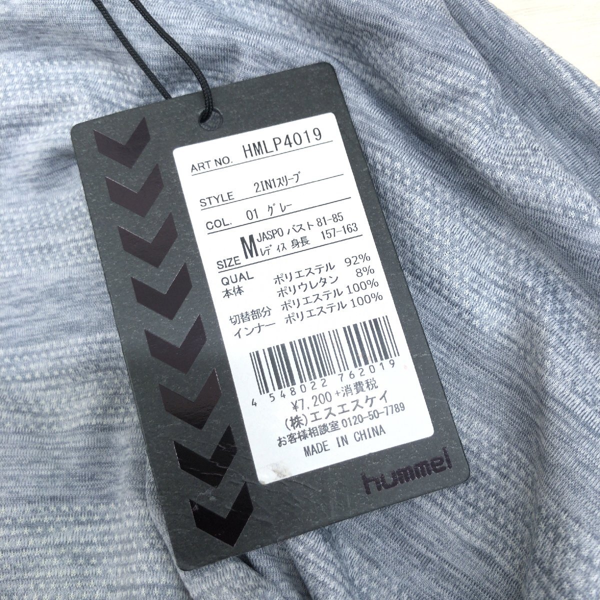 新品 hummel ヒュンメル 定価7,200円+税 吸水速乾 ドライ カップ付 レイヤード トレーニング シャツ M グレー サッカー 未使用 レディース
