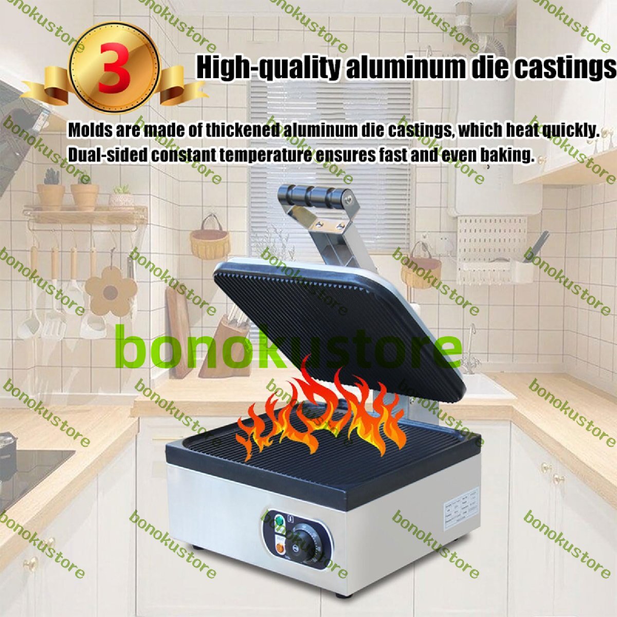 幅広い用途: パニーニサンドイッチ、ハンバーガー、ステーキ、イカリング、クリスピーベーコン、チキン、野菜、その他の食材を焼くのに最適で、レストラン、スナックバー、カフェテリア、ホテル、その他の商業施設に最適です。