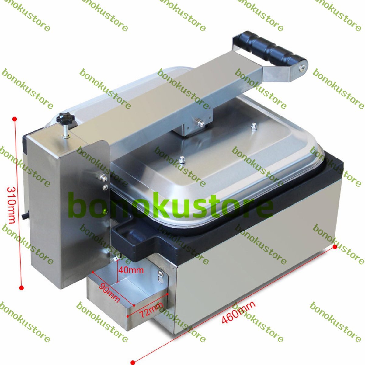 名称: 電動サンドイッチメーカー 電圧: 110V/220V 電力: 1700W 材質:ステンレス 温度制御:50~300℃ 寸法: 460x360x280mm プラテンサイズ:350x325mm 重量: 18kg パック: 電気サンドイッチメーカー1台