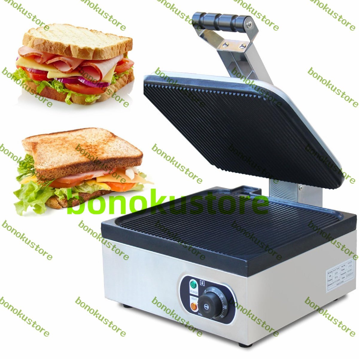 業務用サンドイッチメーカー、1700Wステンレス製朝食トースターグリル、温度調節機能付き、スナックバー、フードトラック、レストラン向けパニーニベーキングマシン