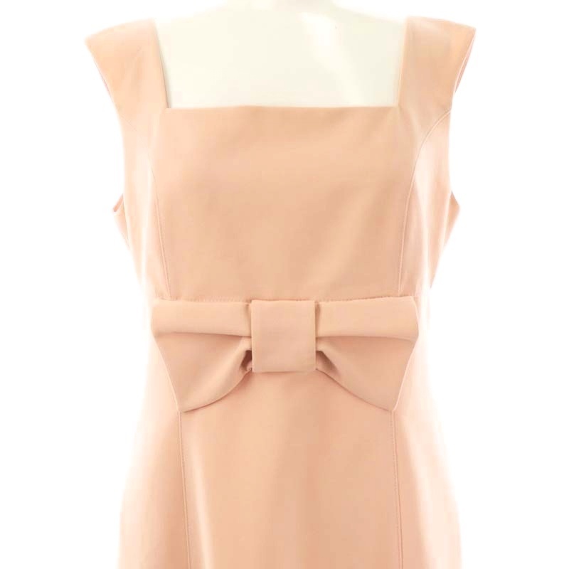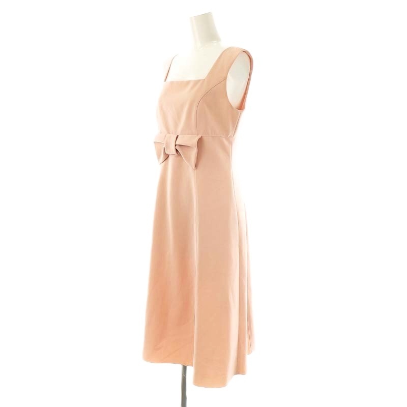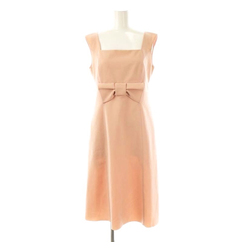 フォクシーニューヨーク FOXEY NEW YORK スクエアネック リボン ノースリーブ ワンピース ミモレ ロング 40 ピンク