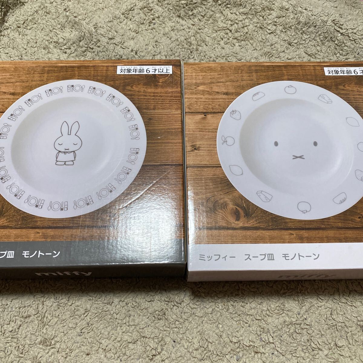 miffy ミッフィー スープ皿モノトーン グレー ホワイト 皿 プレート 2枚セット