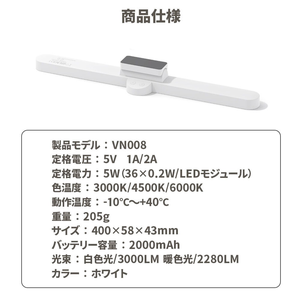 点灯モード:3段階調色(3000K/4500K/6000K)、無段階調光