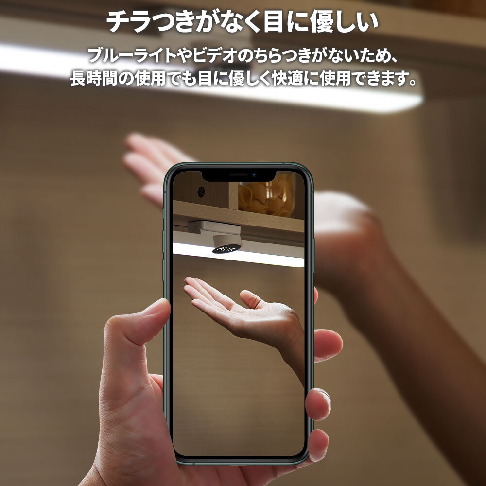 センサー部分に手をかざすことで明るさを無段階で調節することができるので、使用シーンに合わせた発光色や明るさにすることができます。