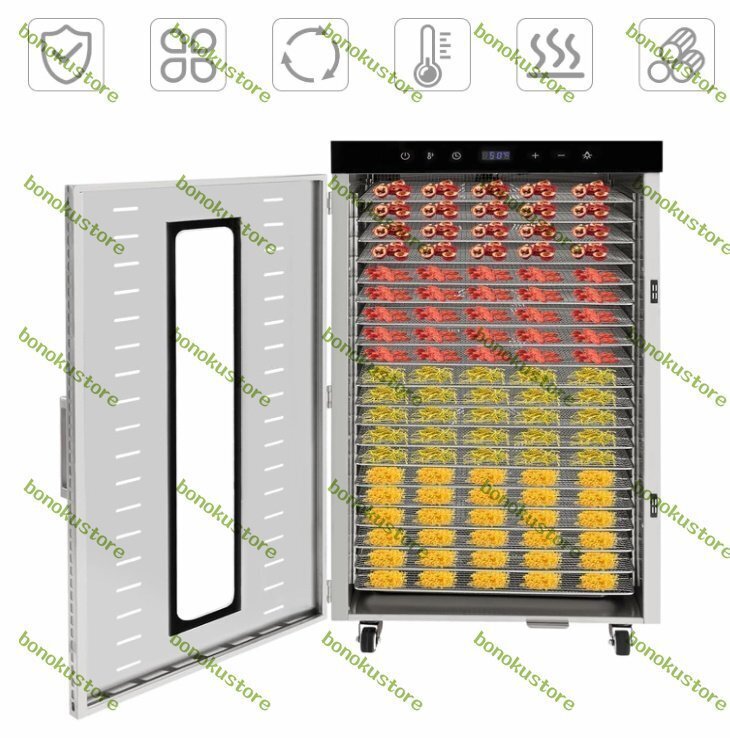 商品の説明応用この製品は、果物、お茶店、ペットショップ、飲料店、作物、ハーブ、海産物などの乾燥ニーズを満たすことができます。 さまざまな野菜、果物、スパイス、肉、花、その他の食品を乾燥できます。使い方1. 果物を洗ってスライスします。2. 果物を食品乾燥機に均等