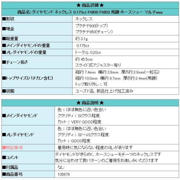 | 商品名:ダイヤモンド ネックレス 0.175ct Pt900 Pt850 馬蹄 ホースシュー マルチway | |