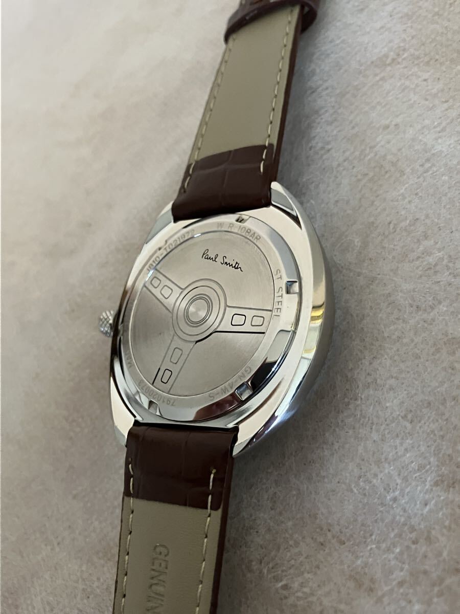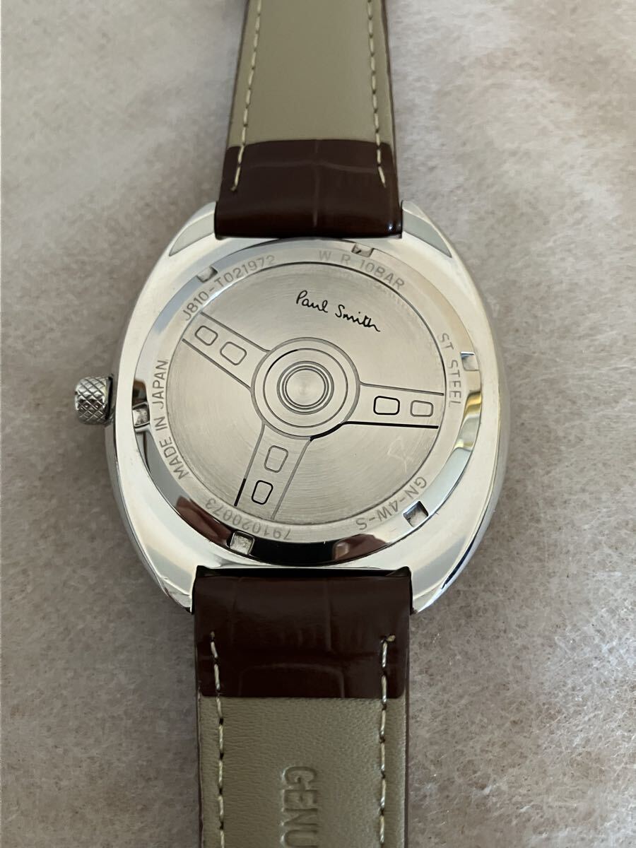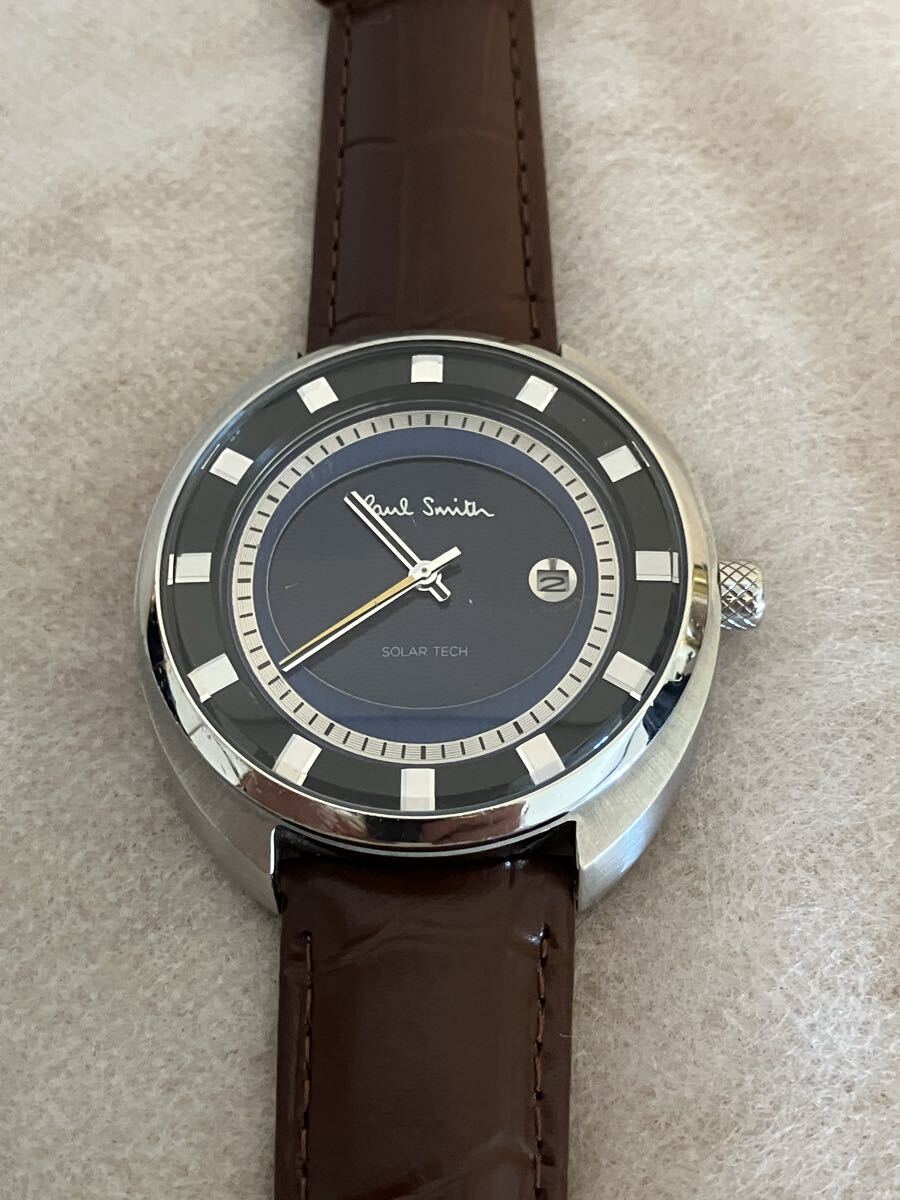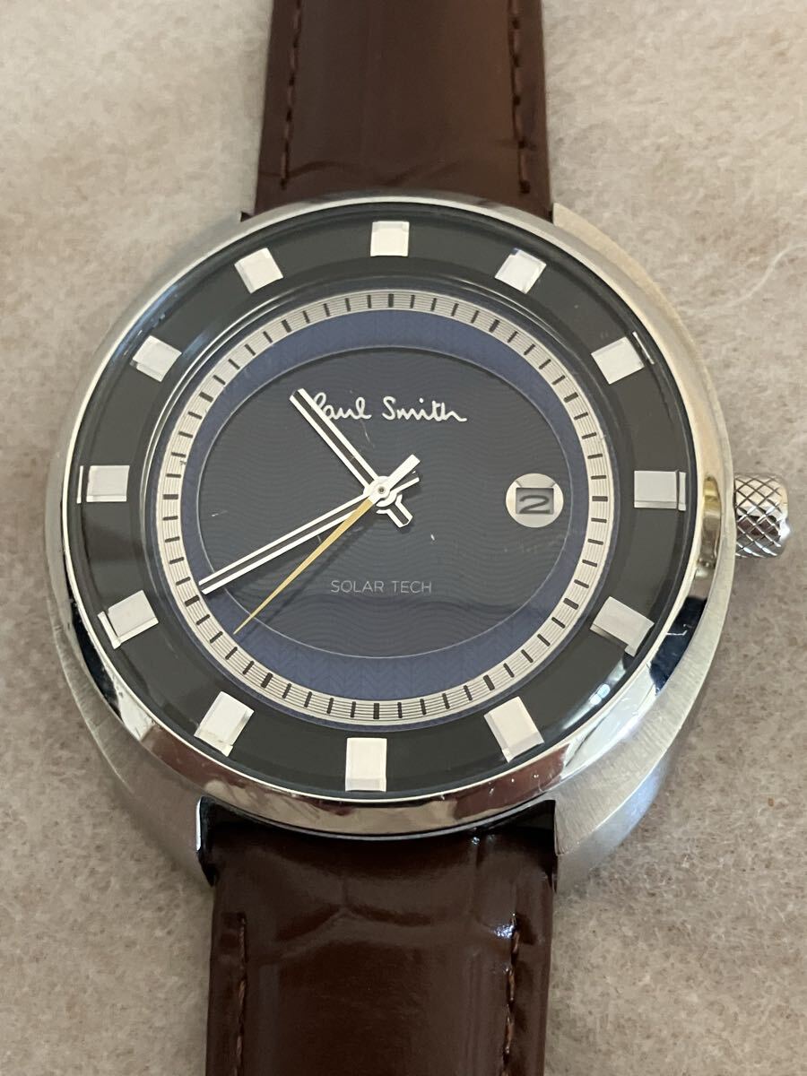 稼働中のPaul Smithポールスミス腕時計です。シルバーのケースにネイビーの文字盤が特徴的なソーラー腕時計です。