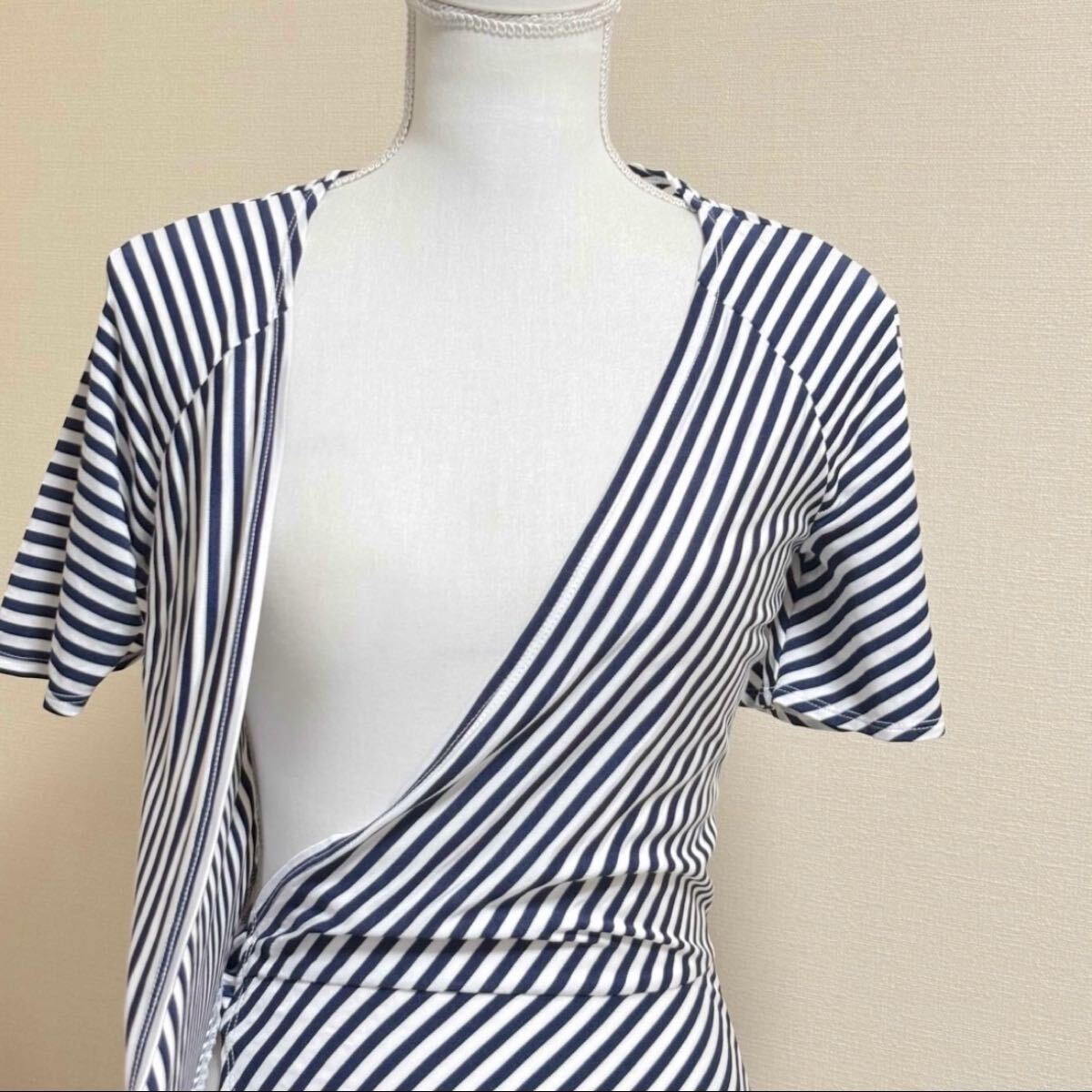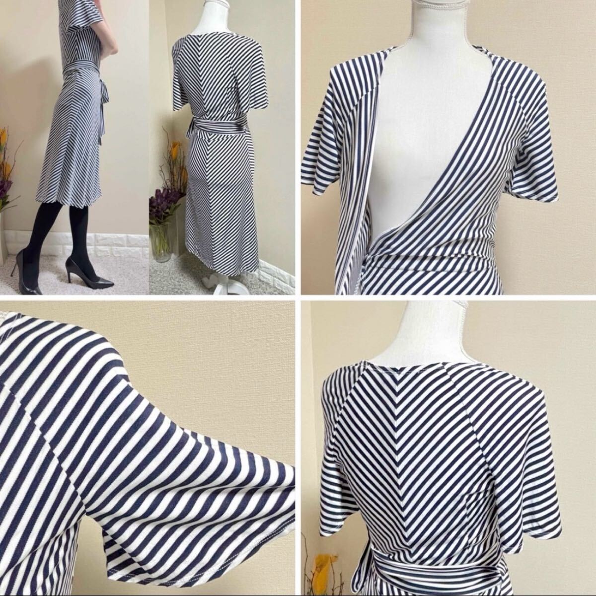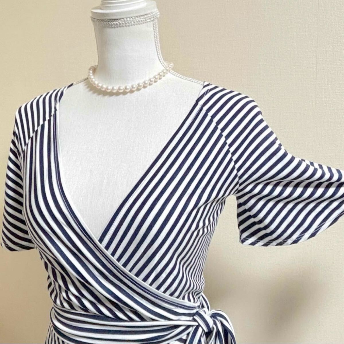 カシュクール×ストライプ柄の大人っぽいボーダーラップワンピースです