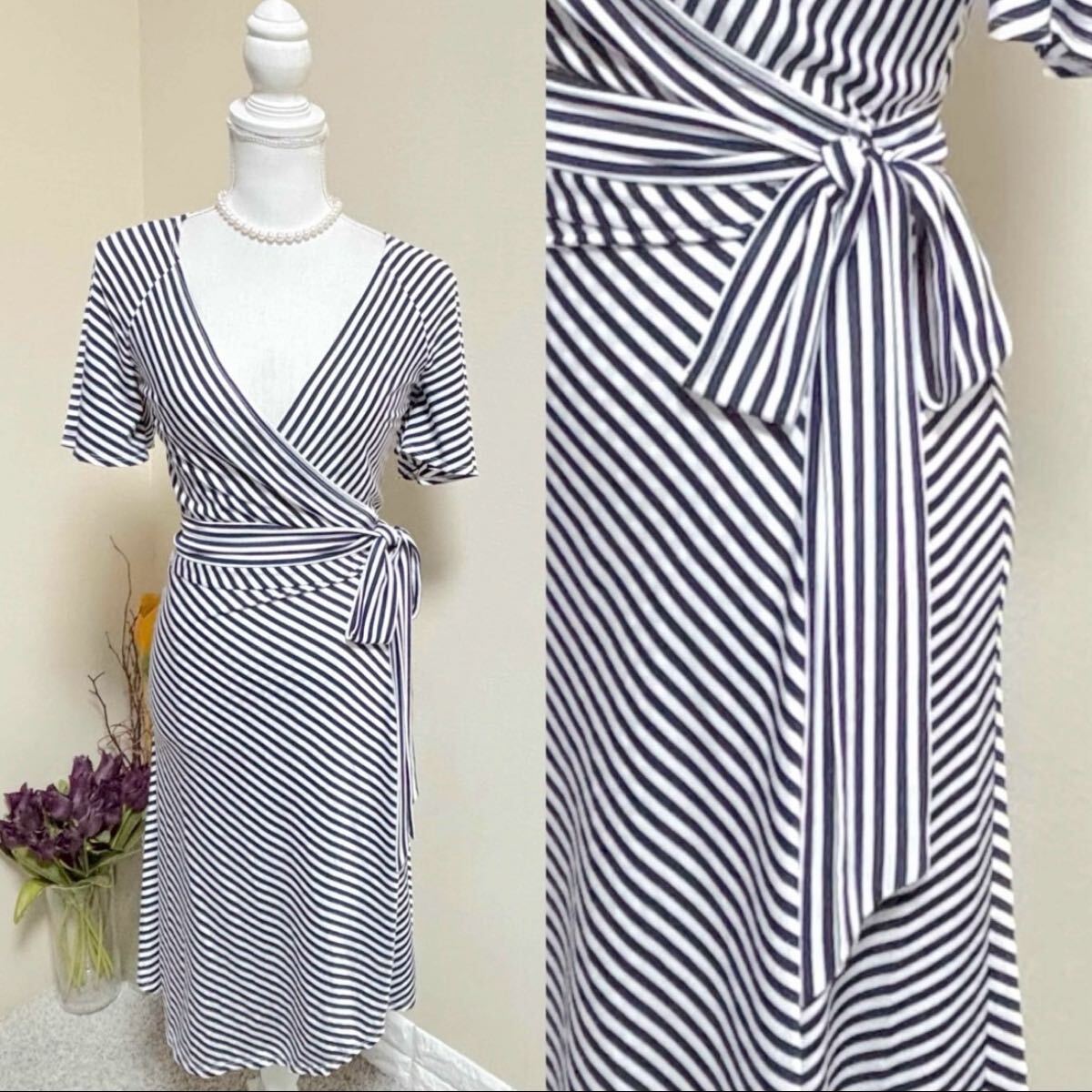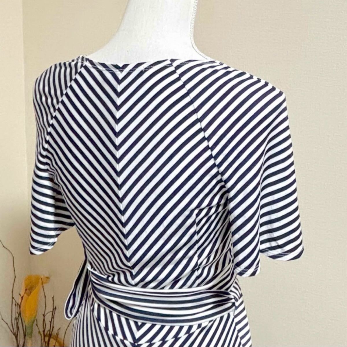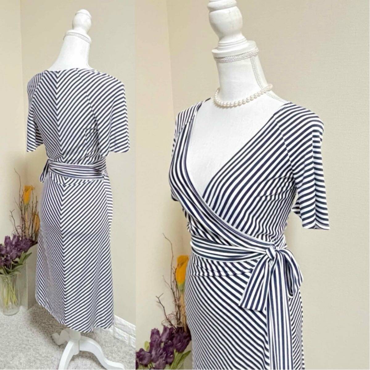 カシュクール×ストライプ柄の大人っぽいボーダーラップワンピースです