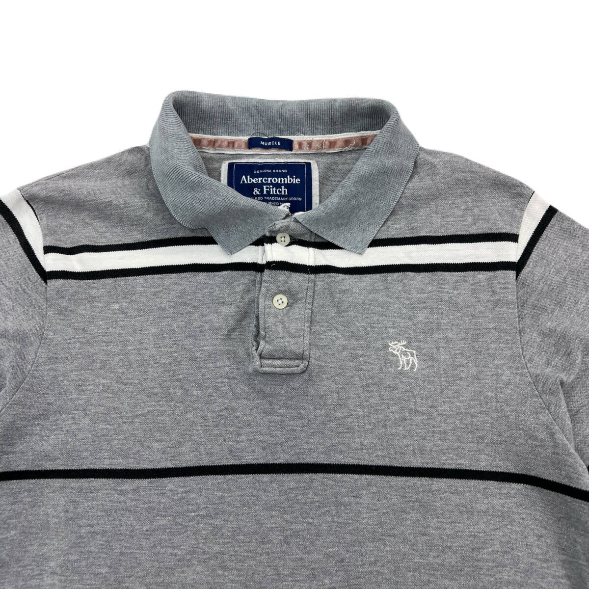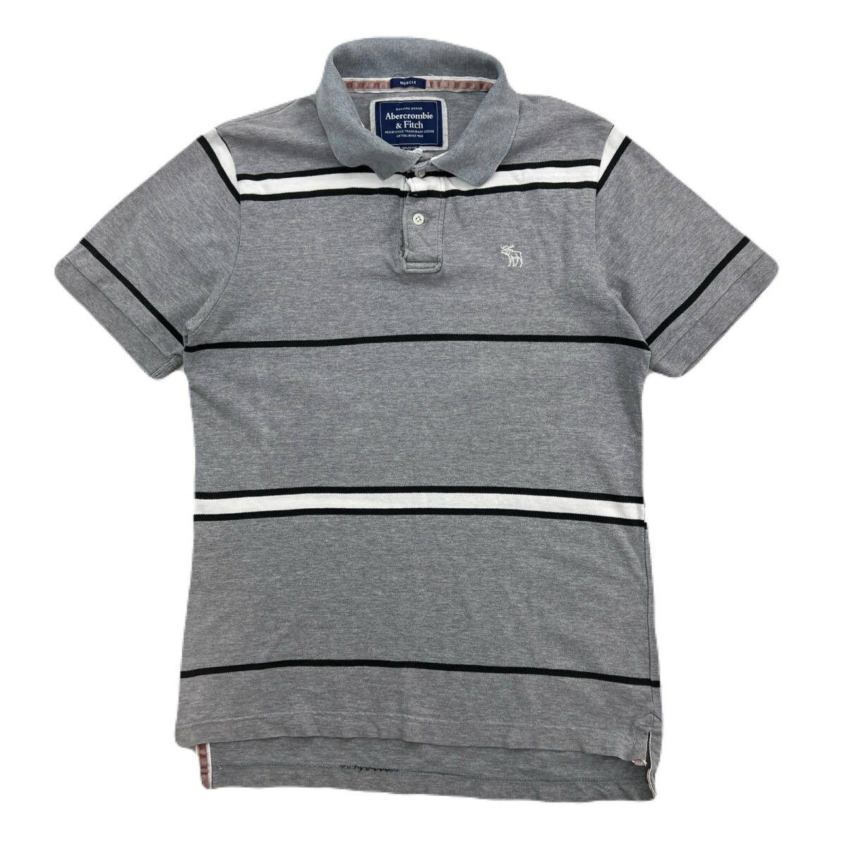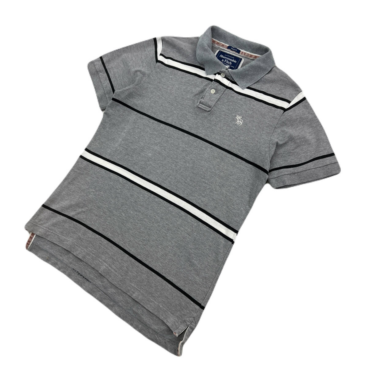 アバクロンビー&フィッチ 半袖 ポロシャツ グレー ボーダー メンズ Mサイズ 【 アメカジの着こなしに♪ 】 ABERCROMBIE&FITCH ●FD311