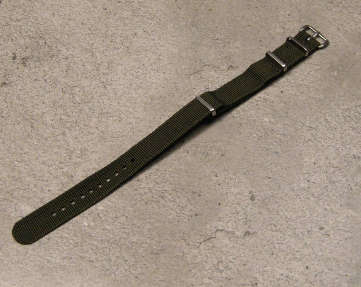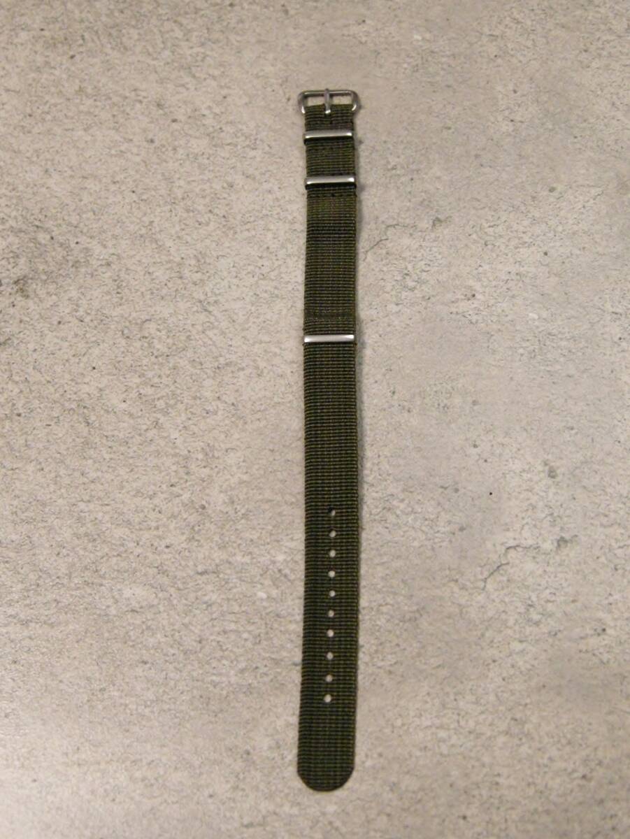 ミリタリータイプの時計に合う時計バンド NATOタイプ カーキ色、ナイロン製(USED)。数回使用のみ。