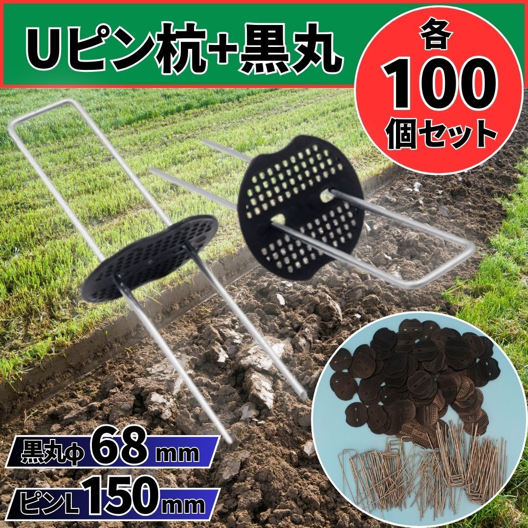 Uピン杭 黒丸 15cm 100本セット 防草シート 固定用 押さえピン 人工芝 園芸 家庭菜園 除草 ガーデニング マルチ 農業 U字型釘 ターフ テント ペグ