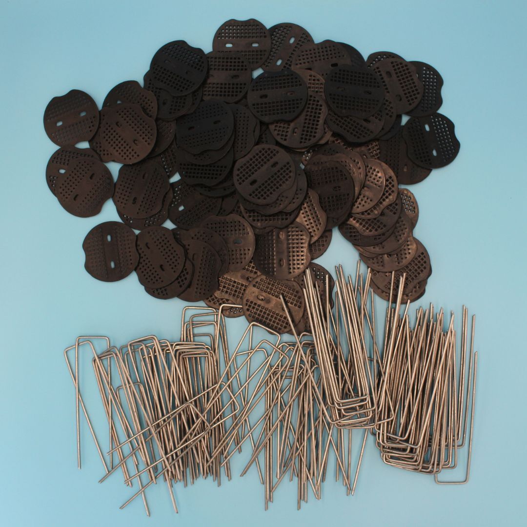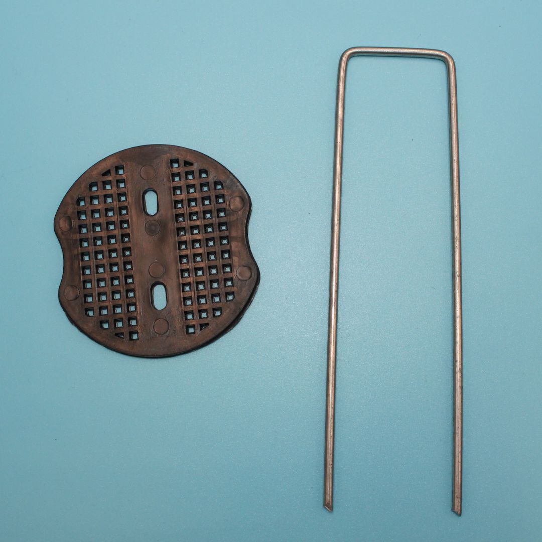 防草シートや人工芝、マルチシートを固定するUピンと黒丸をセットにしました。
