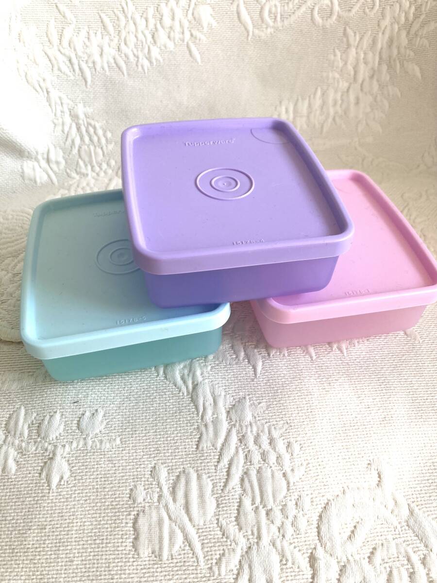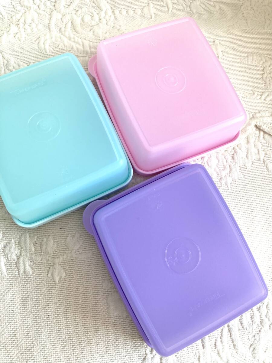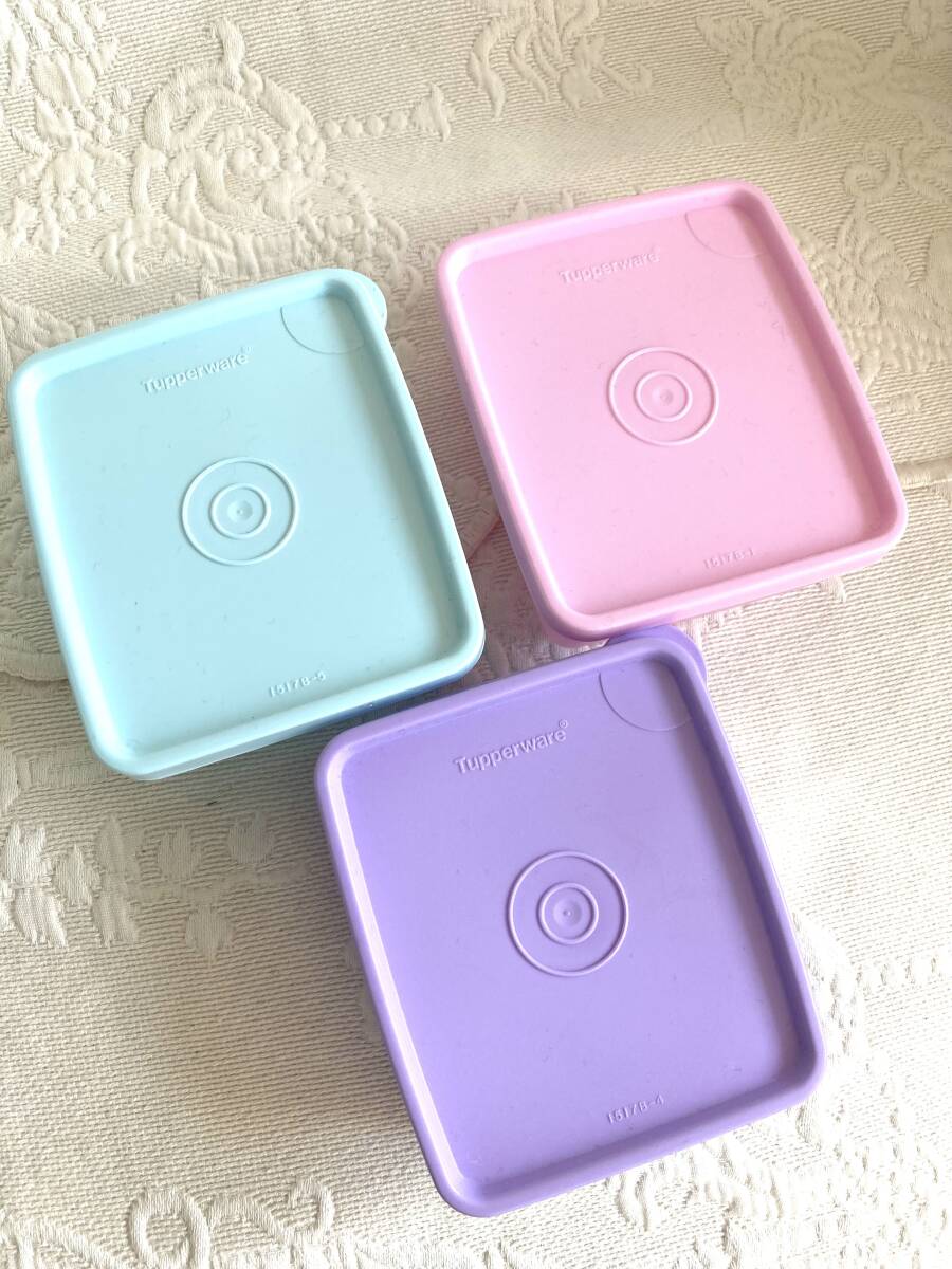 未使用 3個セット Tupperware  タッパーウェア スクエア パステルカラー パープル ブルー ピンク