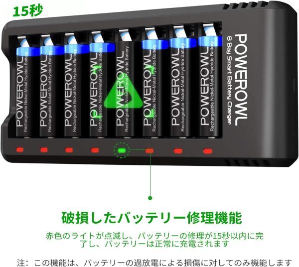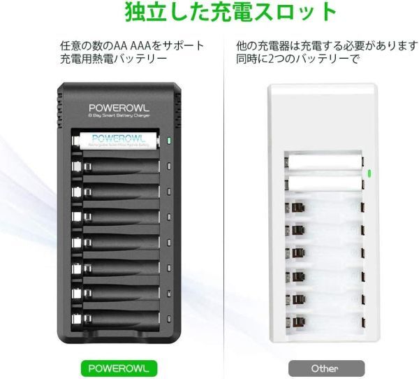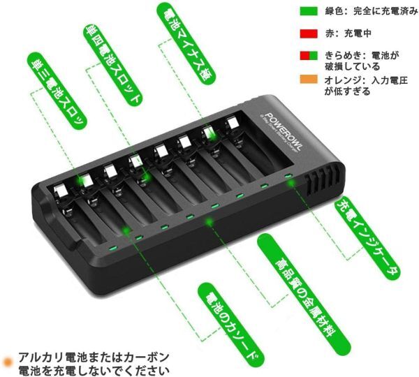 POWEROWL 急速充電器 単3・単4形 8本同時充電可能 ニッケル水素/ニカド 黒 新品未使用品になります。