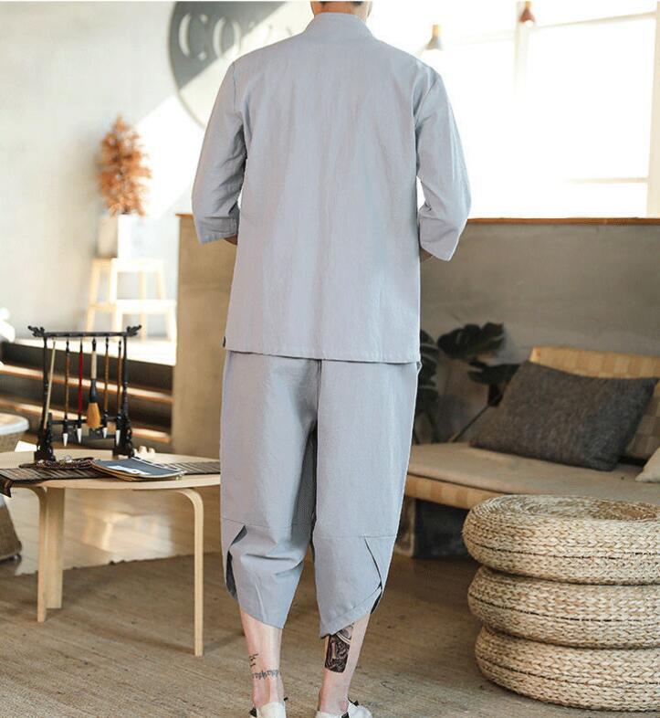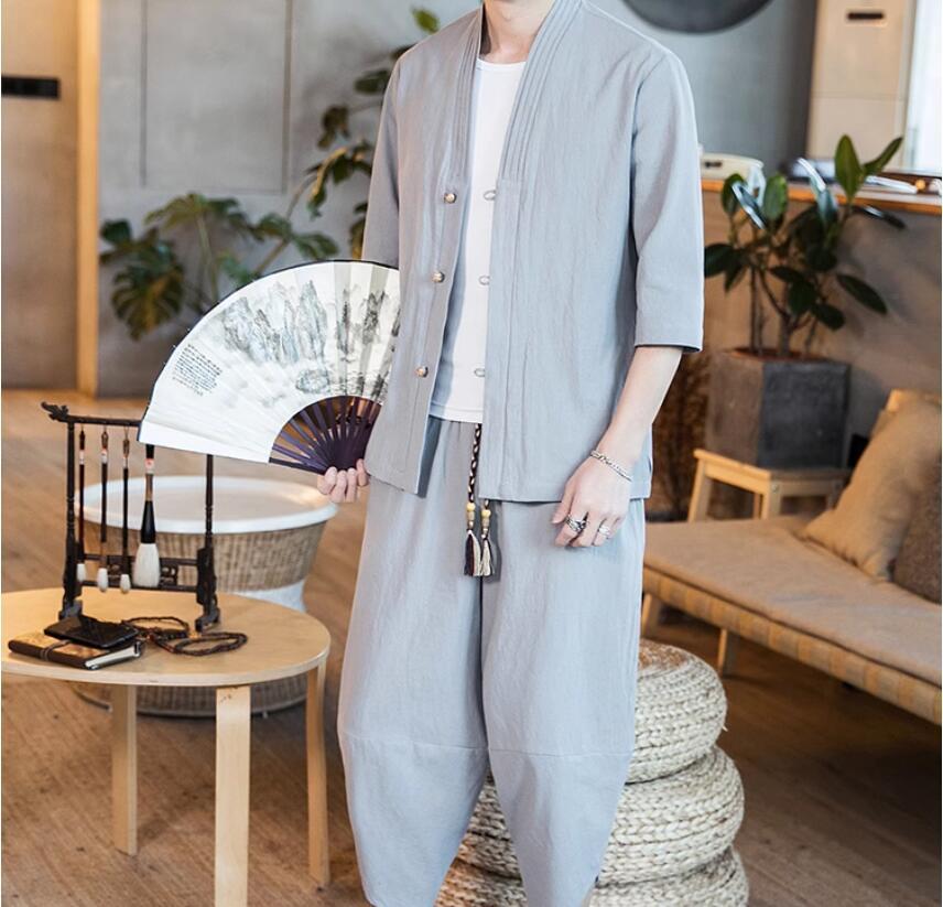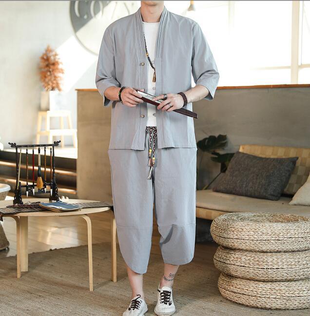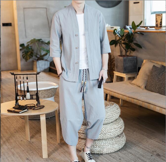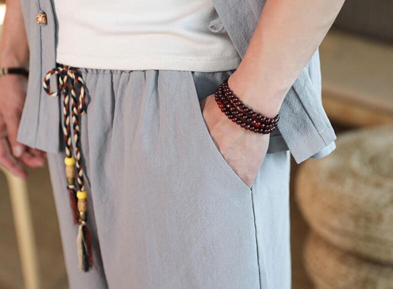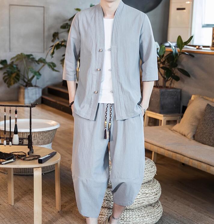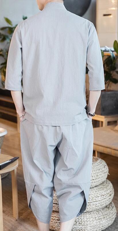 大人気新品夏ジャージメンズ 綿麻上下セット 夏服 スウェット トレーナー セットアップ 涼しい 部屋着 運動着 カジュアル ライトグレー