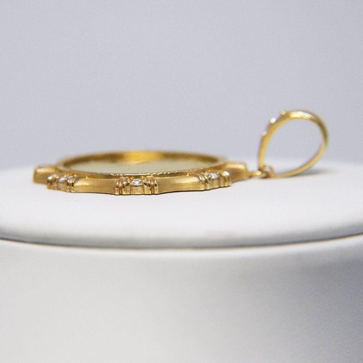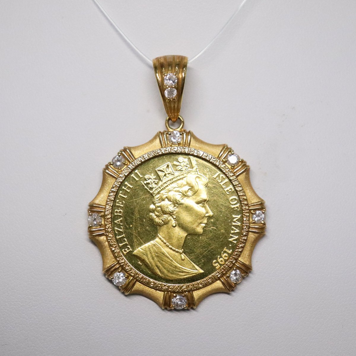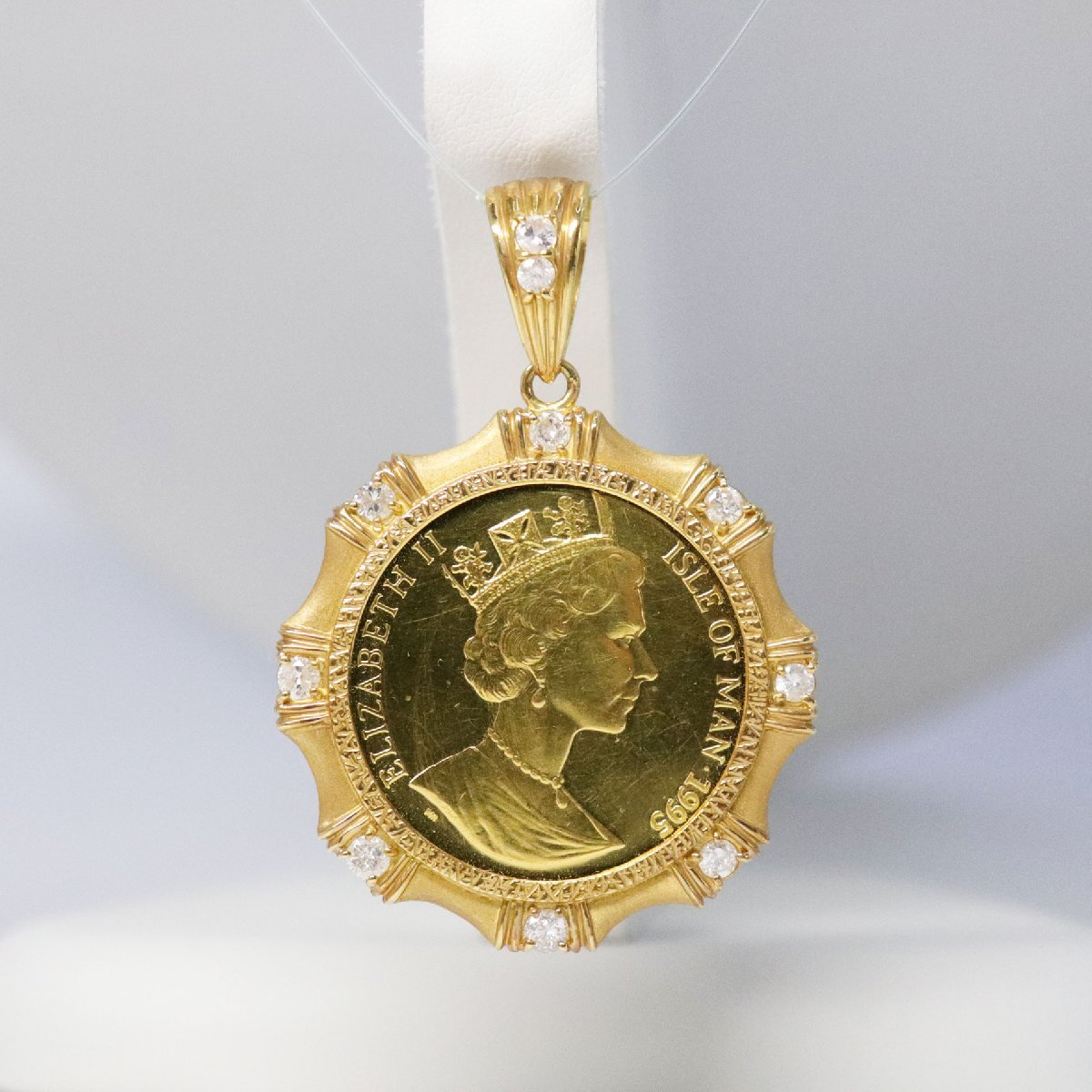 商品名 ダイヤ付 K18枠/K24 1995 マン島キャット エリザベスII世 金貨 1/2oz ペンダントトップ PH コイン 重量約26.3g D1.00ct 中古 送料無料!