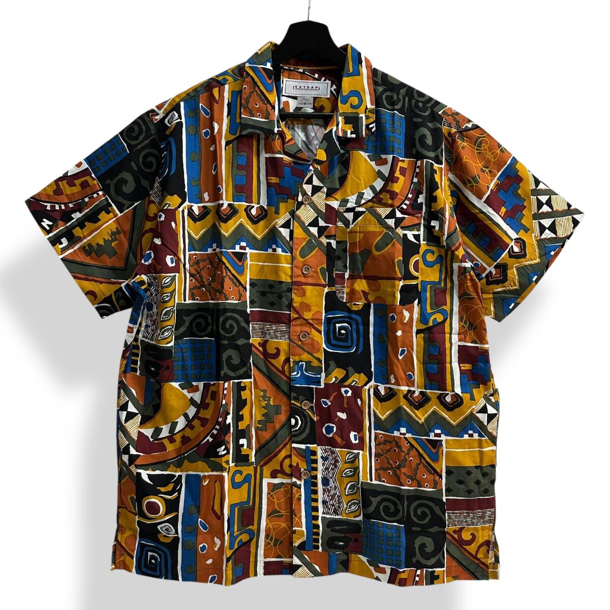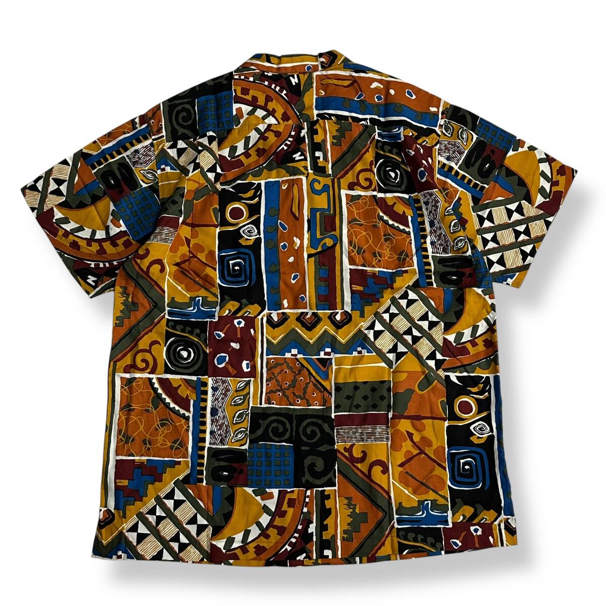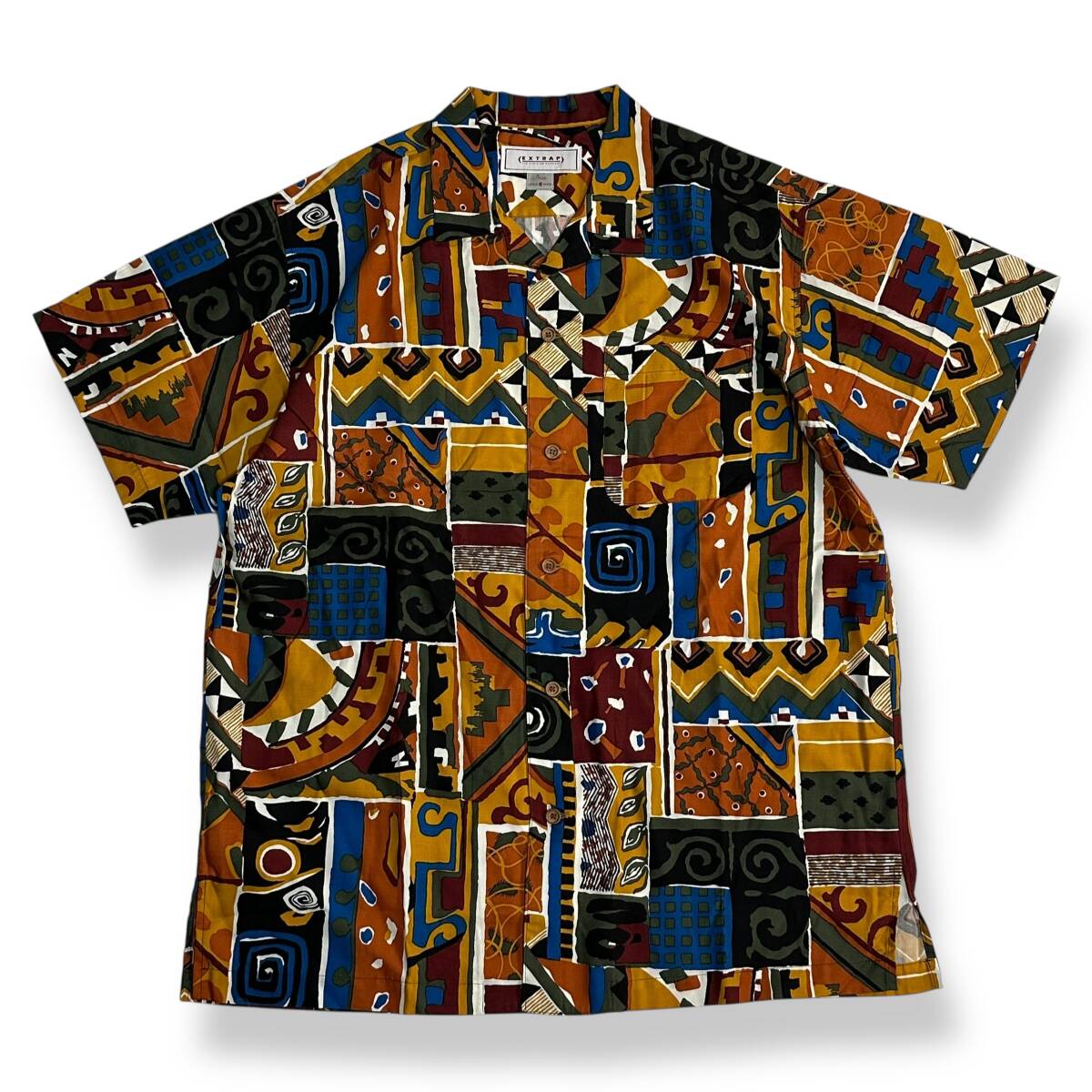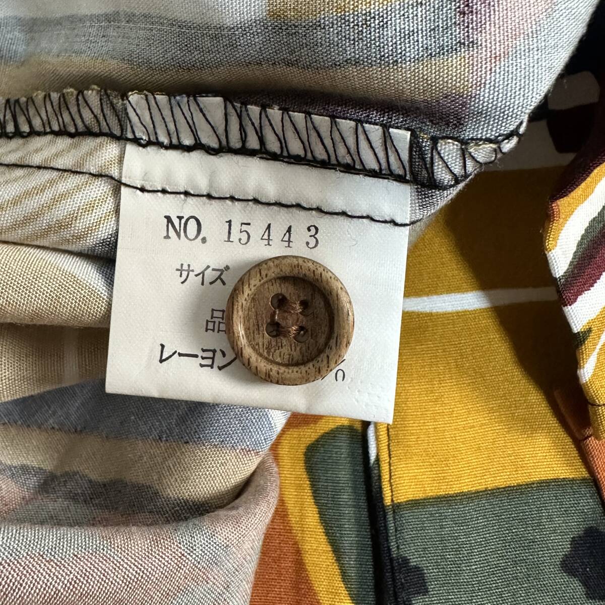 美品 レア【EXTRAP】VINTAGE 90s~ アートデザイン 総柄 レーヨン100% ビンテージオープンカラーシャツ 日本製 個性的 派手シャツ