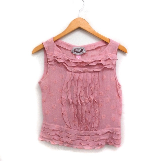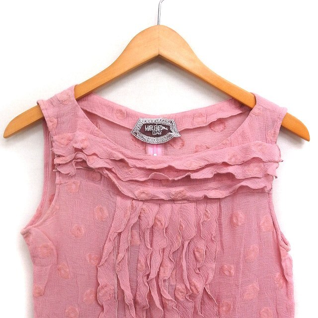 マーレンダム MARLENEDAM シルク ブラウス ノースリーブ フリル ドット刺繍 40 ピンク /FT38 レディース