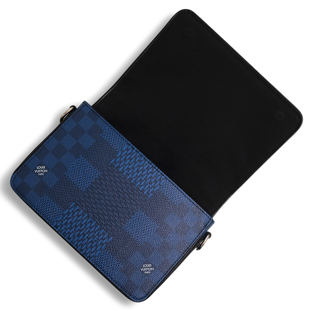メゾンを象徴する市松模様をコバルトブルーでアレンジしたダミエ・グラフィット 3D キャンバスでスマートかつモダンに再解釈した「ステュディオ・メッセンジャー」。