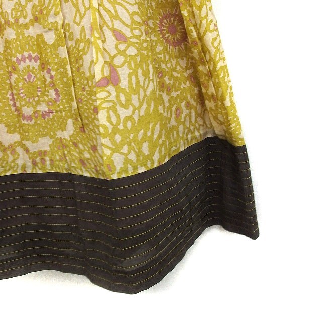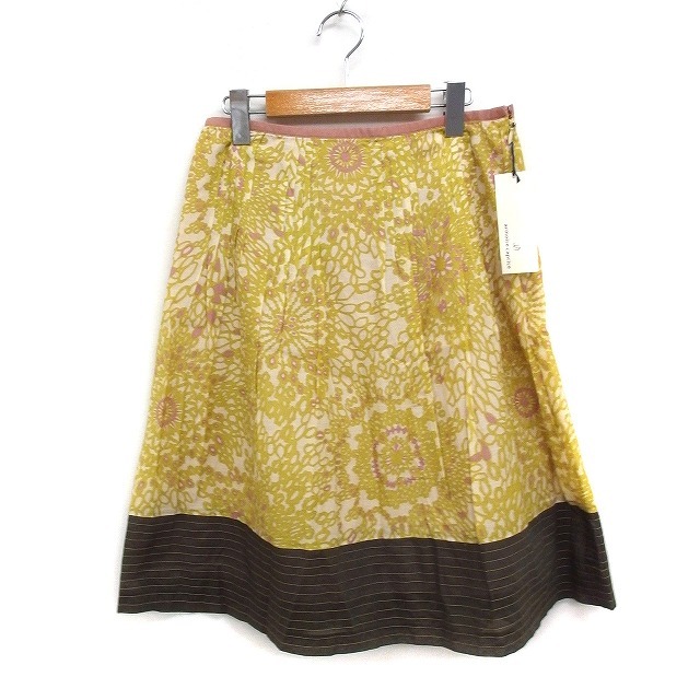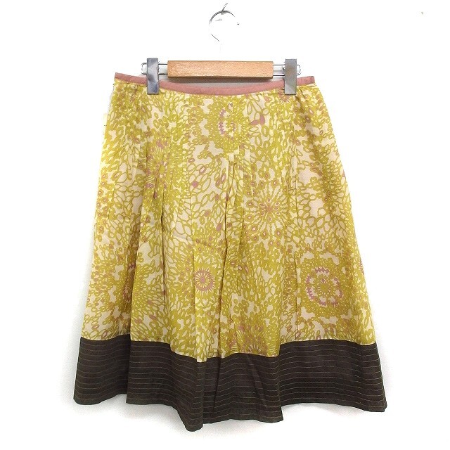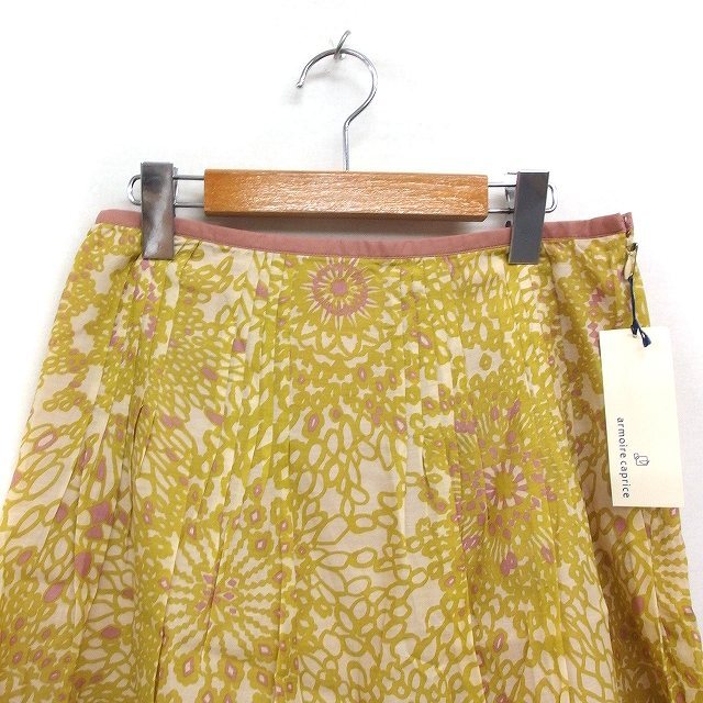 アーモワールカプリス armoire caprice タグ付き 花柄 タック フレアスカート ひざ丈 コットン 綿 38 ベージュ オリーブ /FT33 レディース