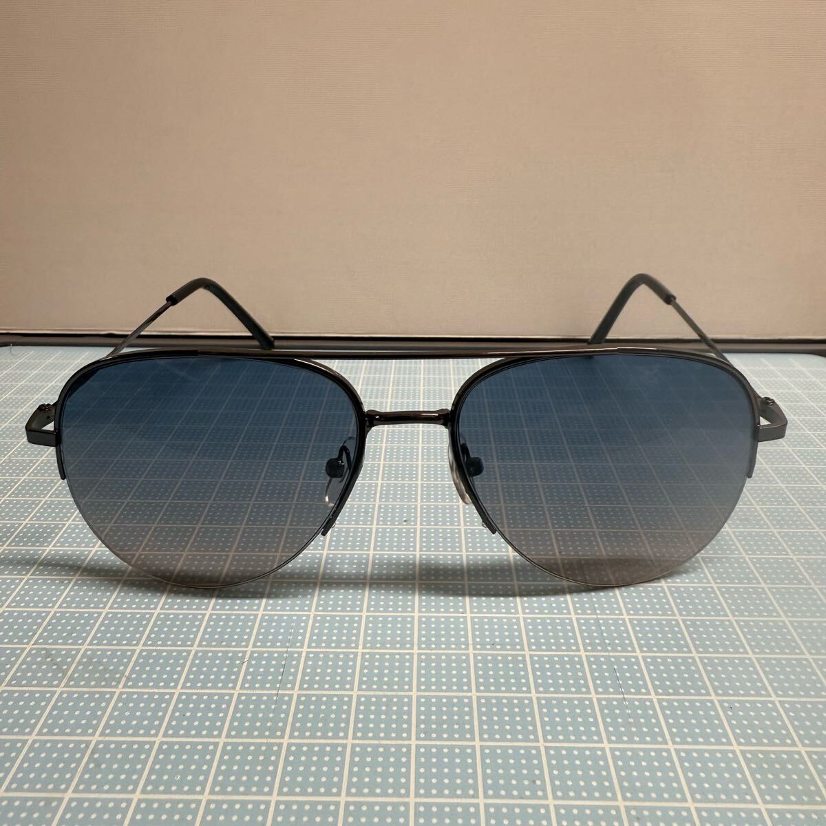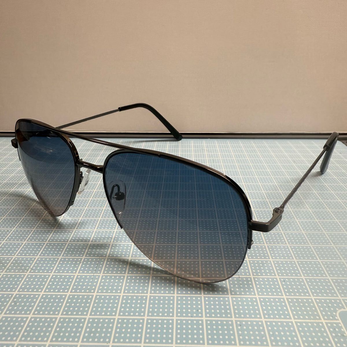 新品 サングラス ブラックフレーム ブルーベージュグラデーションレンズ レイバンアビエイター風 1-12