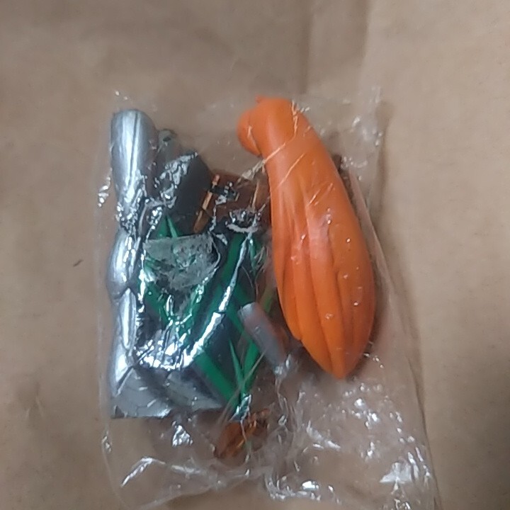 いつのものか不明です。パーツは全て揃っております。袋に一部シールを剥がした跡がございます。 組み立てた大きさ:高さ約10.5cm、横(スタンドの横幅)5.7cm。 自宅保管。