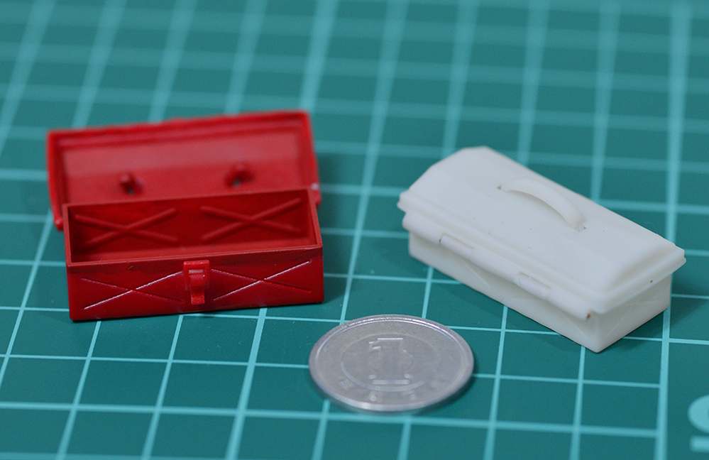 1/12スケールの工具箱を3DCADで設計、3Dプリンターで出力したものになります