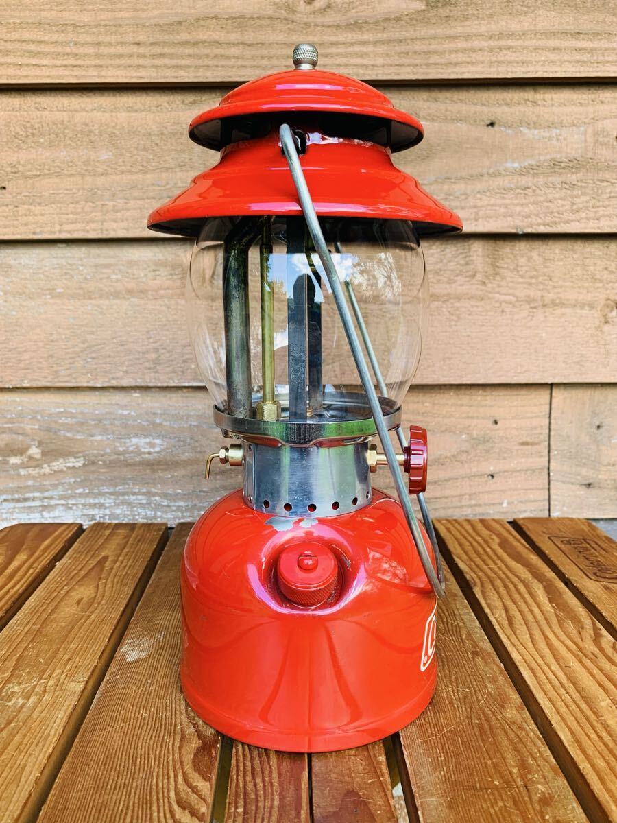 ■1966年10月生まれの名機パテペン!200Aランタンです。キャンプサイトの緑に映える、抜群の存在感!鮮やかなレッドです。