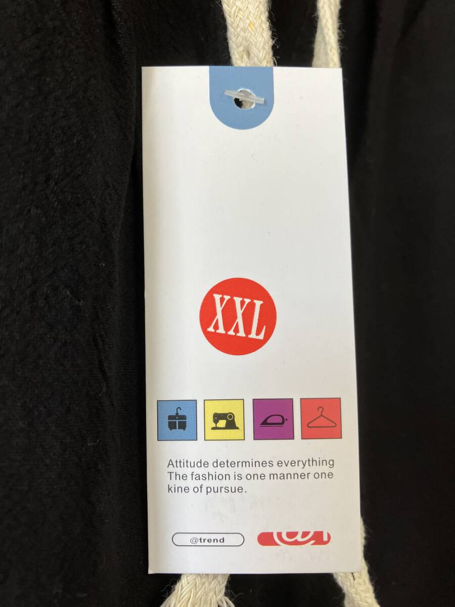 表記は2XL(XXL)ですが、実際のサイズはそれより小さい感じです。
