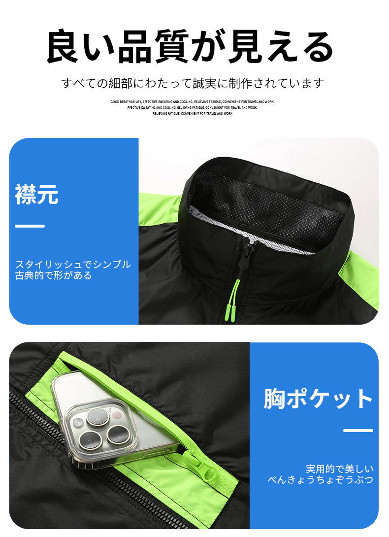 | 商品説明 | メイン素材: 100% ポリエステル ★【セット内容】空調服単品 ★【カラー】 迷彩 /グレー /ブラック ★サイズとカラー選択可能です、落札後、ご要望のサイズとカラーを提示くださいませ。 ★素人採寸の為、誤差が生じる場合がございます。ご了承下さいお願いします。 ★【通気性抜群】生地の微細孔は通気性があり、左右の腰の辺りに取り付けられたファンを用い、衣服の中に外気を取り入れ、体の表面に大量の風を流すことにより汗を蒸発させ、体を瞬時に冷やし、全身を清涼感で包みます。炎天下の作業で涼しい服の使用範囲は非常に広く、高温の悪境、建築労働者、室内作業、屋外作業及び屋外探検など多くの場面で使用でき、暑さ対策と夏場の作業効率を上げられます。 ★【洗濯&セット内容】この空調作業服の生地には、撥水加工が施されています。そのため、雨天でも作業することができます。また、汗や水滴が生地に染み込んでしまうこともありません。服は洗濯機でお洗濯が可能です。洗濯前に、バッテリー、扇風機、電源ケーブルを取り外してください。 |