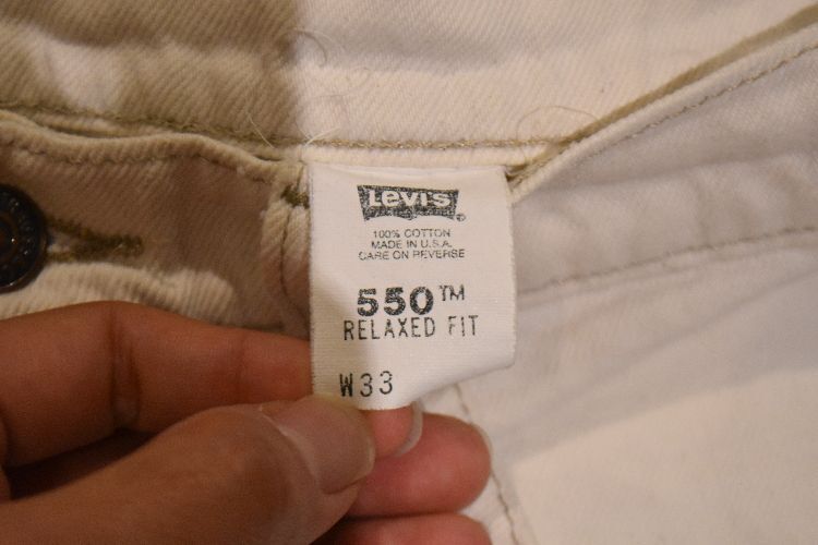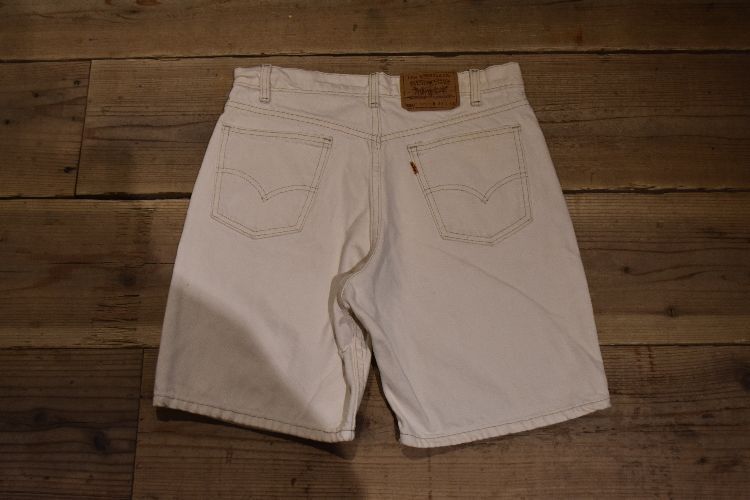グッドスタイル◎USA製アメリカ製ビンテージLevisリーバイス550リラックスフィットデニムショーツW33ホワイト白アメカジストリート w759