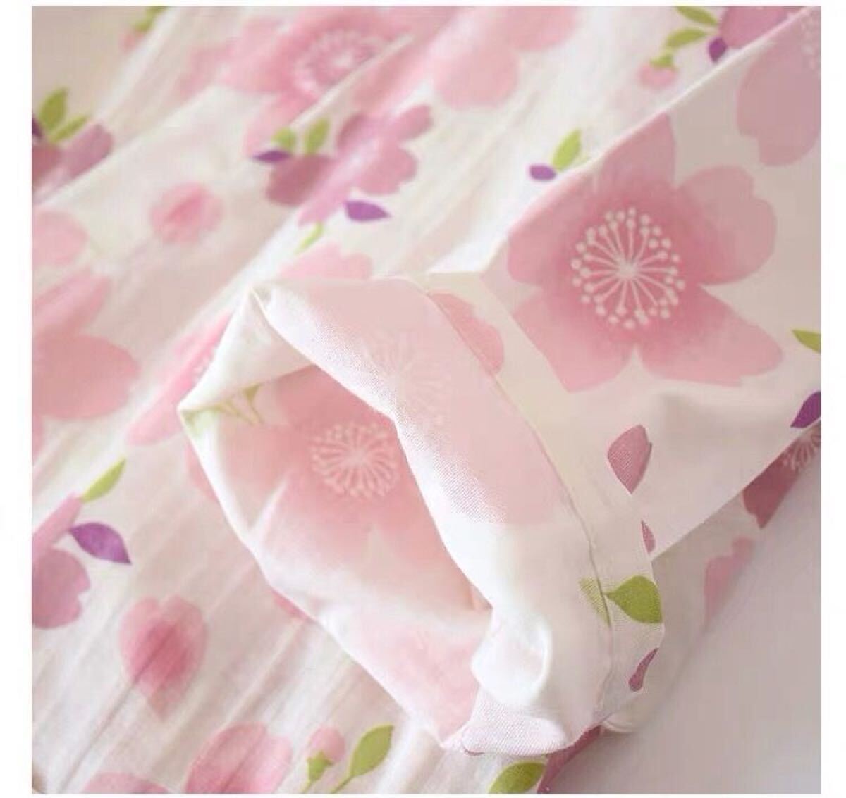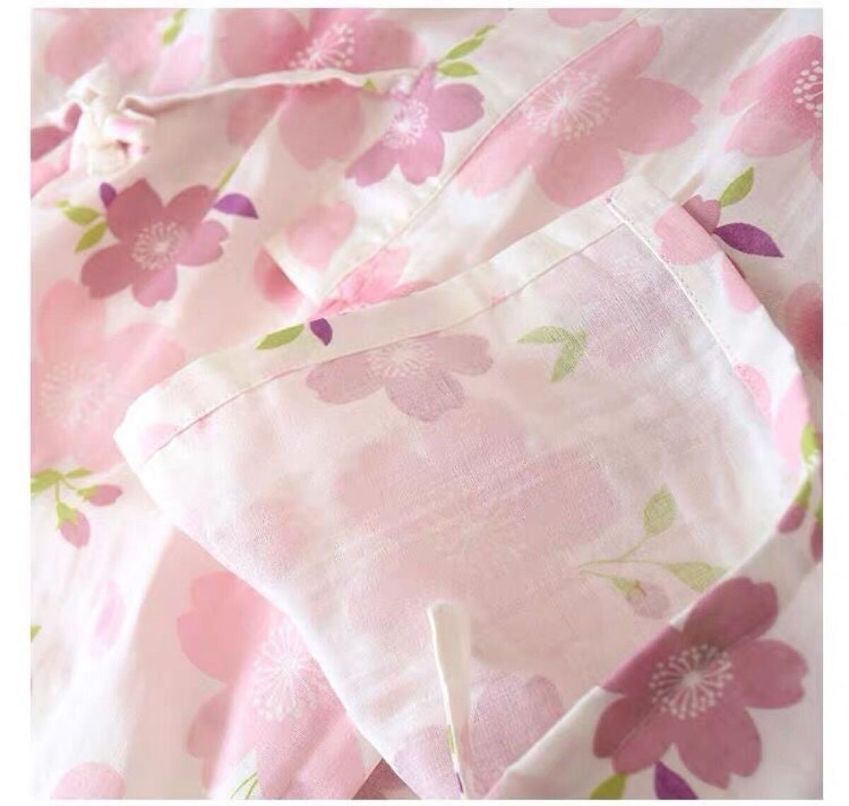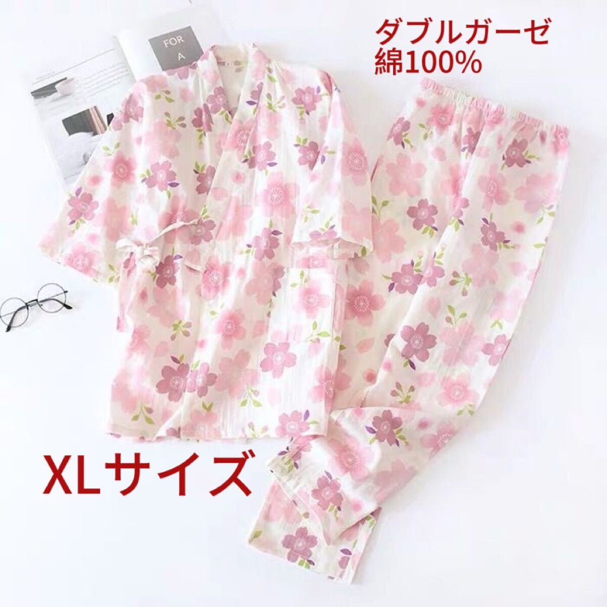 甚平 部屋着 XL上下セット夏ガーゼ作務衣レディース タグ付き未使用 綿100 ルームウェア ダブルガーゼ 桜花女性 通気 上下セット ゆったり
