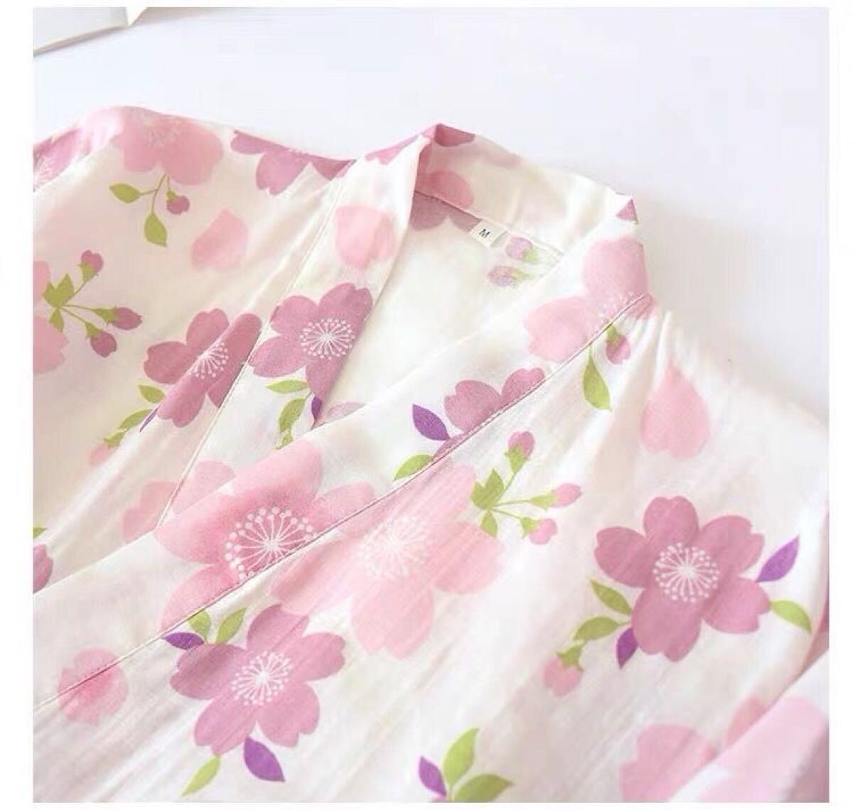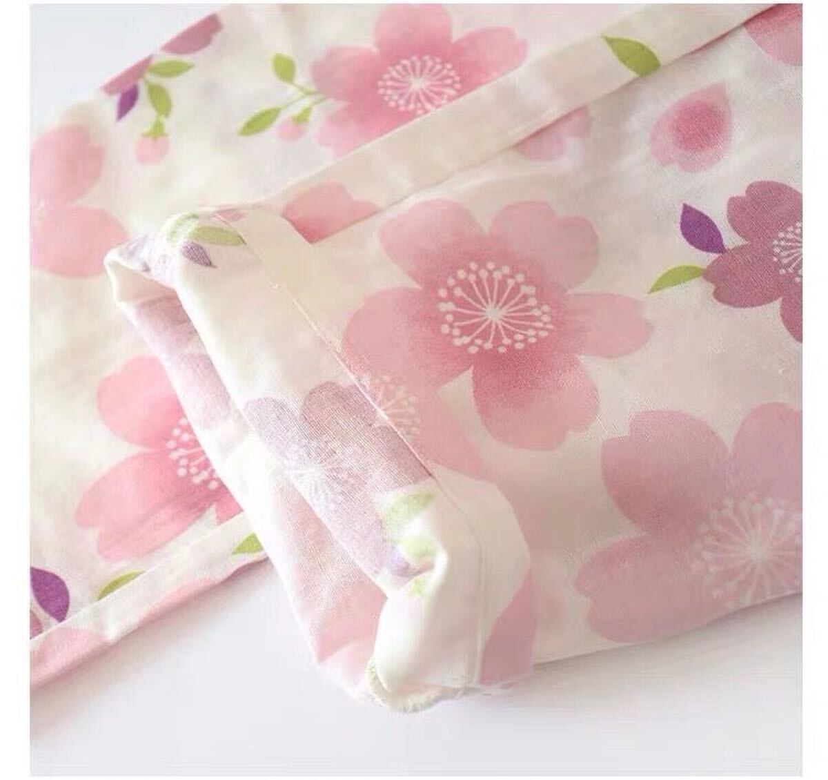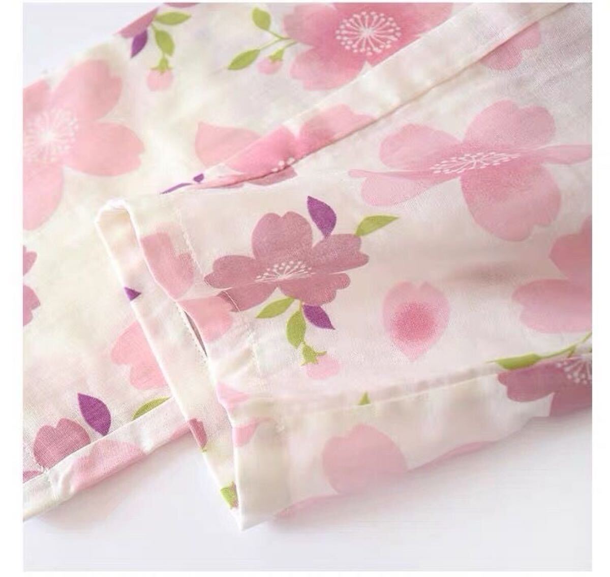 甚平 部屋着 XL上下セット夏ガーゼ作務衣レディース タグ付き未使用 綿100 ルームウェア ダブルガーゼ 桜花女性 通気 上下セット ゆったり