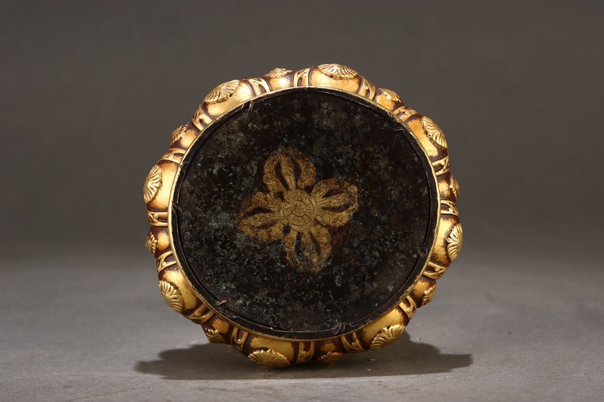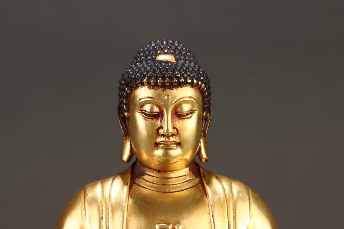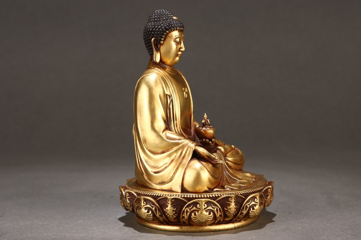 「明代 大明永楽年施 古銅彫 塗金薬師仏坐像」旧銅器 置物擺件 賞物 中国古美術 旧蔵出