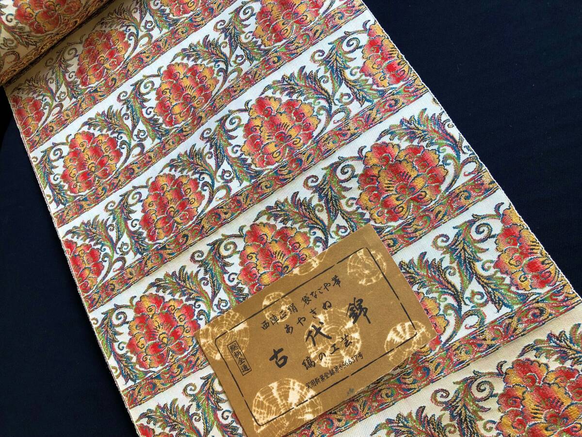 新品 古代錦 帯 名古屋帯 西陣正絹 あやぎぬ 金糸入り アンティーク・ヴィンテージ 最高級帯