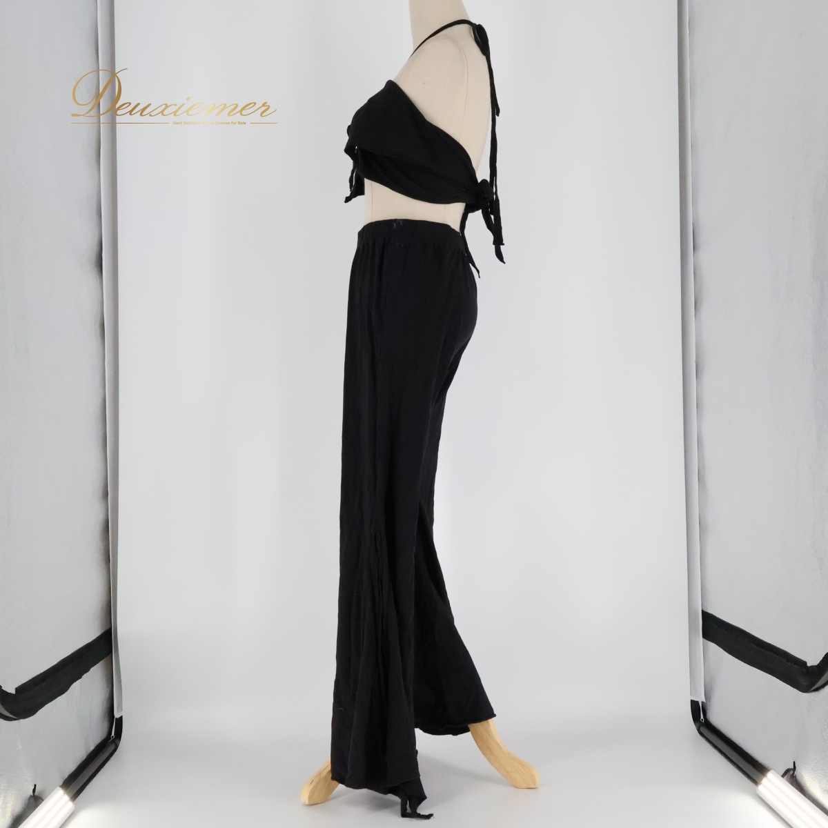 | 【商品名】ベリーダンス衣装 上下セット トップス 【サイズ】L表記 平置き実測:総丈約42cm(裾~肩部まで)、ネック紐右約78cm 左約91cm、 アンダー全長約146cm、アンダー紐右約42cm 左約40cm ※実測の為、多少の誤差はご了承ください 【仕様】 ・伸縮性有り ・胸パット無し フレアパンツ 【サイズ】L表記 平置き実測:総丈約94cm、ウエスト約30cm~、股下約74cm、わたり幅約22cm ※実測の為、多少の誤差はご了承ください 【仕様】 ・ウエストゴム仕様 ・伸縮性有り ------------------------------------ 【ポイント】 ▽真っ黒な衣装 ▽無地でシンプル ▽練習着に! ------------------------------------ 【撮影時使用トルソー】 種 類:女性用トルソー7号(少し細めのサイズです) サイズ:肩幅約37cm、バスト約83cm、ウエスト約60cm、ヒップ約81cm |