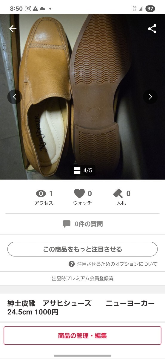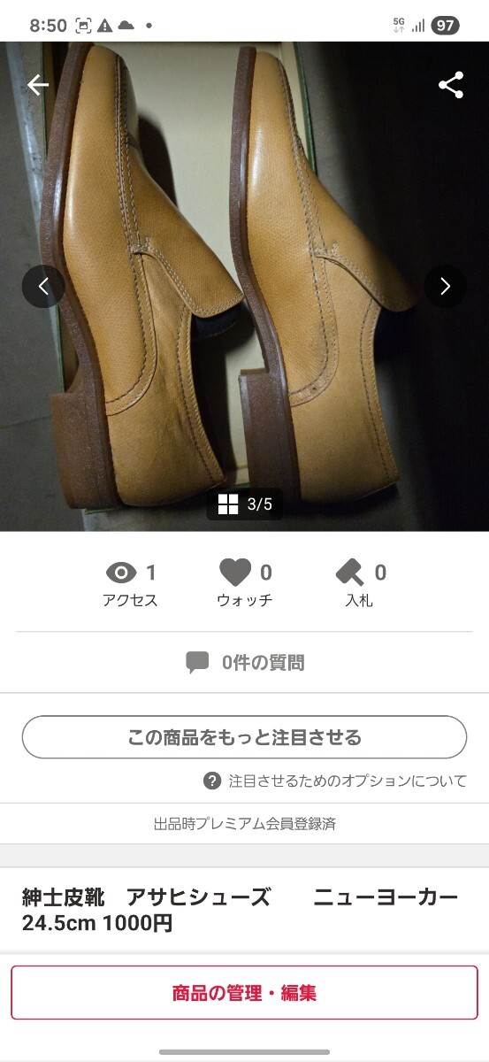紳士皮靴 アサヒシューズ ニューヨーカー 25cm 1000円
