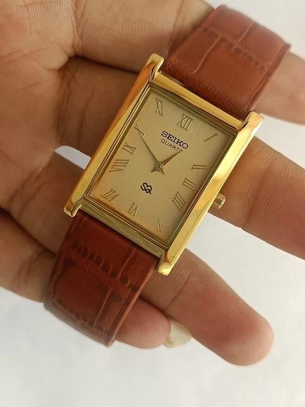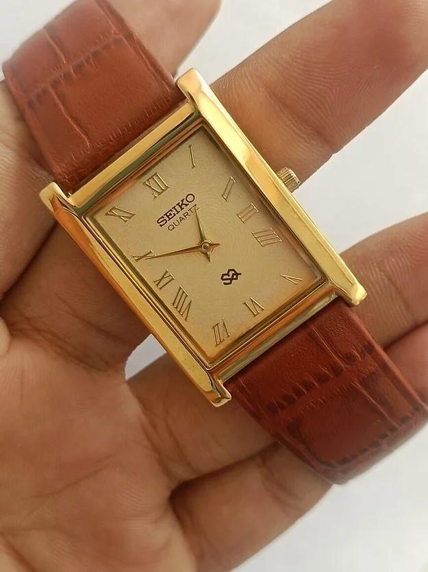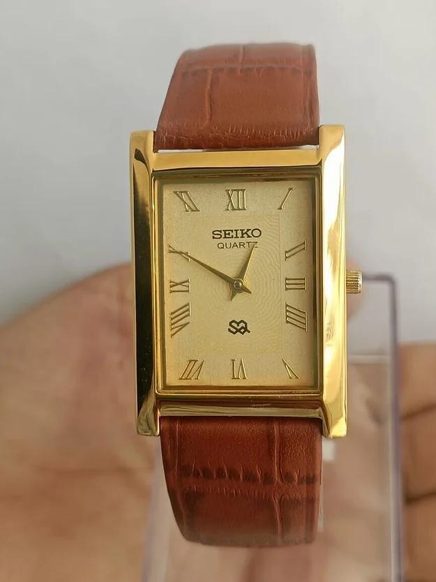 14:OH済 美品★海外限定★ヴィンテージ★セイコー★SEIKO★クォーツ★メンズ 日本未発売 腕時計 ヴィンテージ ゴールド 茶ベルト★送料無料