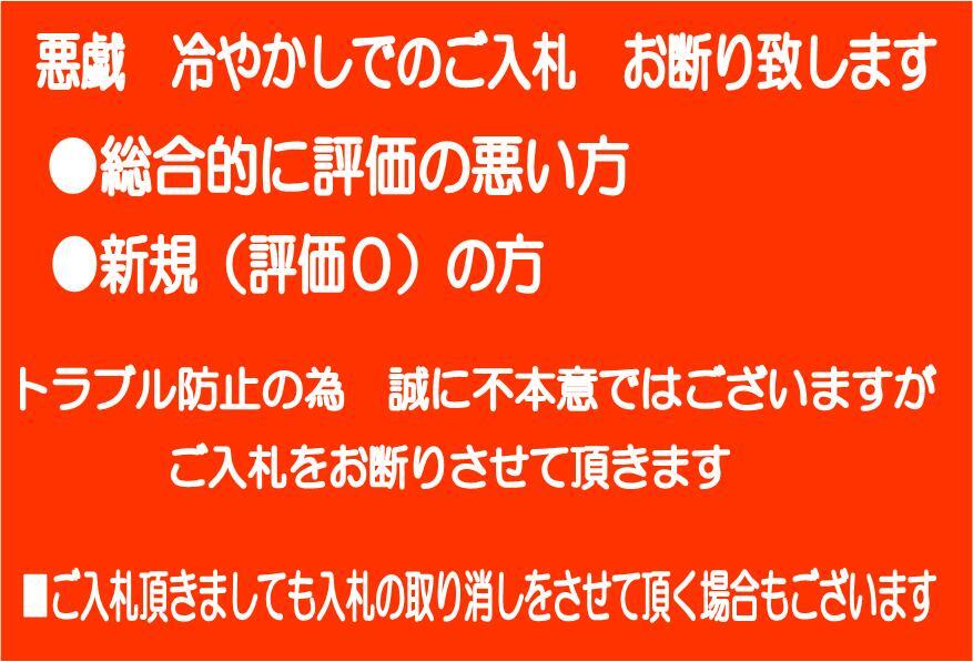 お取引に関しまして | ※落札後のキャンセルはお引き受けできません ※ノークレーム ノーリターン厳守でお願いします ※お支払いは 落札後3営業日以内厳守 ※ご連絡は オークション終了後 24時間以内に当方よりご連絡させて頂きますので 速やかにご返信をお願い致します(36時間以内) ※日本語がわからない方の入札はトラブル防止のためご遠慮願います ※評価の悪い方 新規(評価0)の方のご入札はお断り致しております 不本意ではございますが トラブル防止の為 当方が判断した場合 入札の取り消しをさせて頂く場合もございます ※店頭でも販売しておりますので オークション開催期間中でも 早期終了 取り消しを行う場合もございます ※多忙の為 せっかくご質問頂きましても ご返答できない場合もございます |