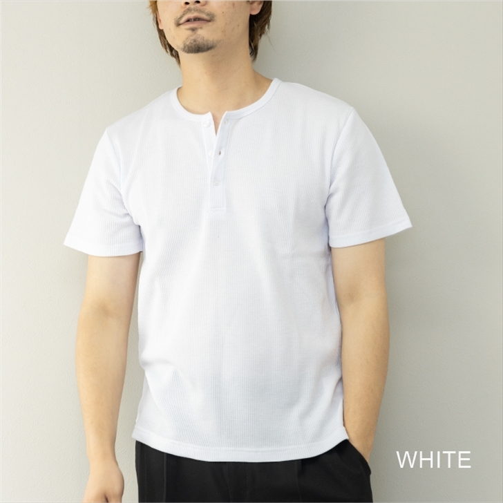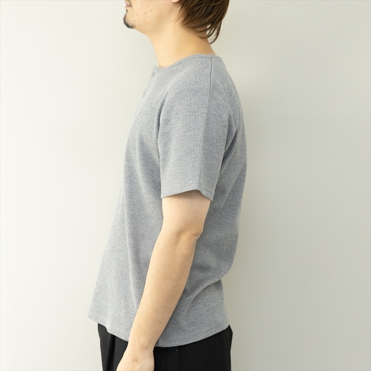定番アイテムのワッフル 半袖 ヘンリーネックTシャツです。