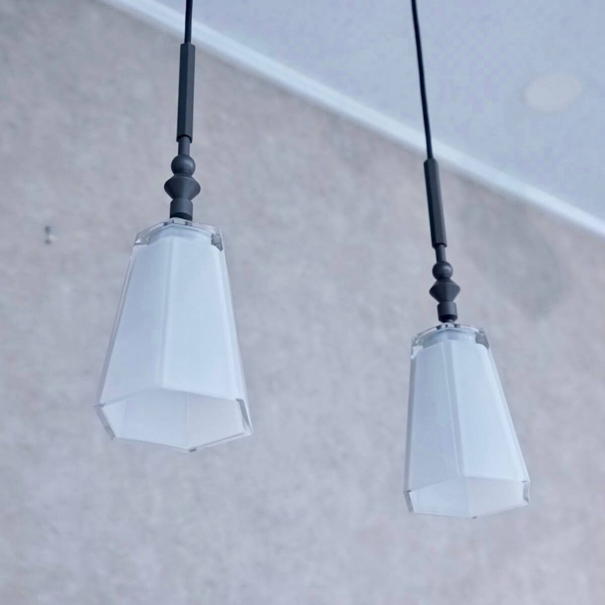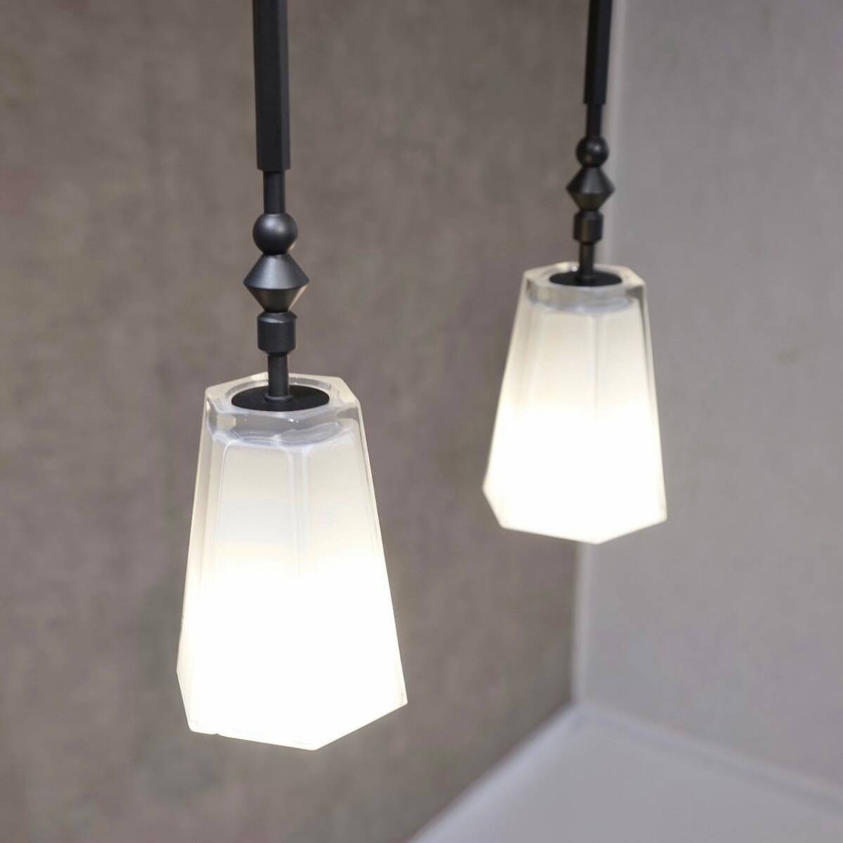 美しい六角形のガラスシェードから放たれる柔らかな光が空間を優しく包み込み、心地よい雰囲気を演出。