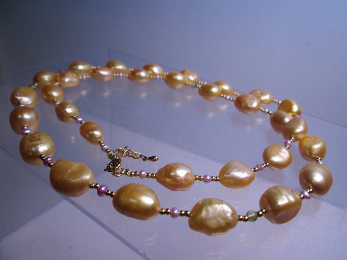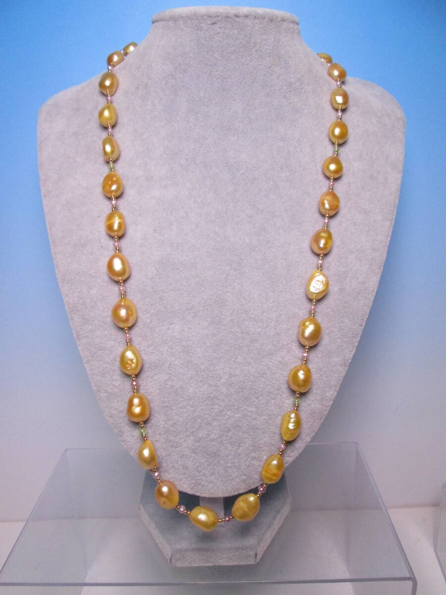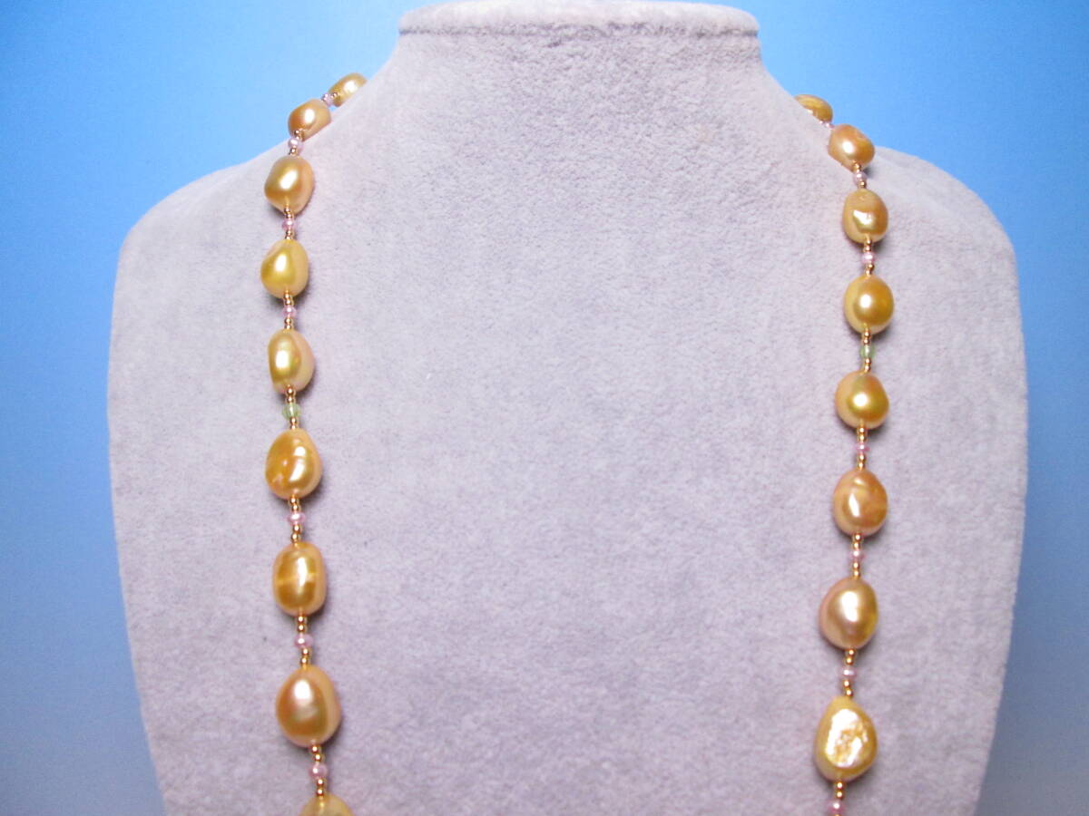 ☆ゴールドカラーパール&ビーズ ロングネックレス 67cm~73cm